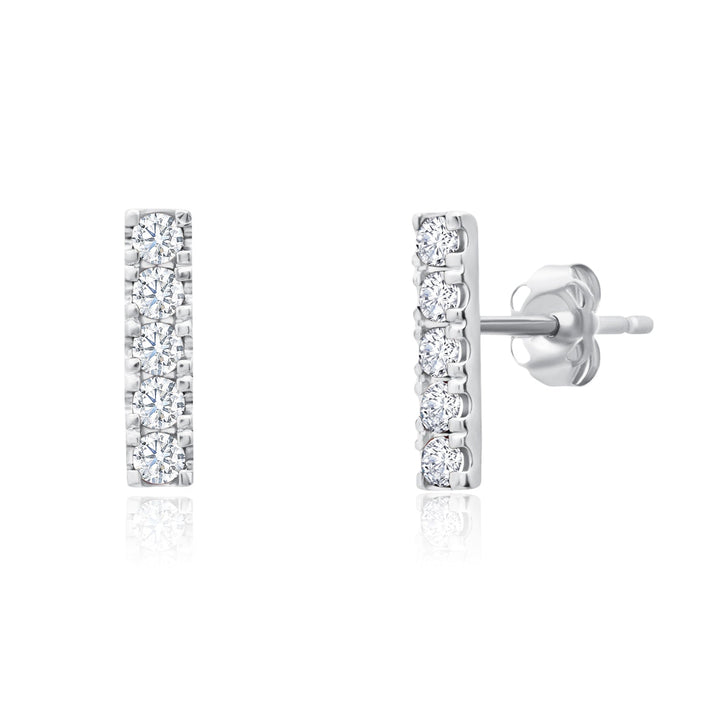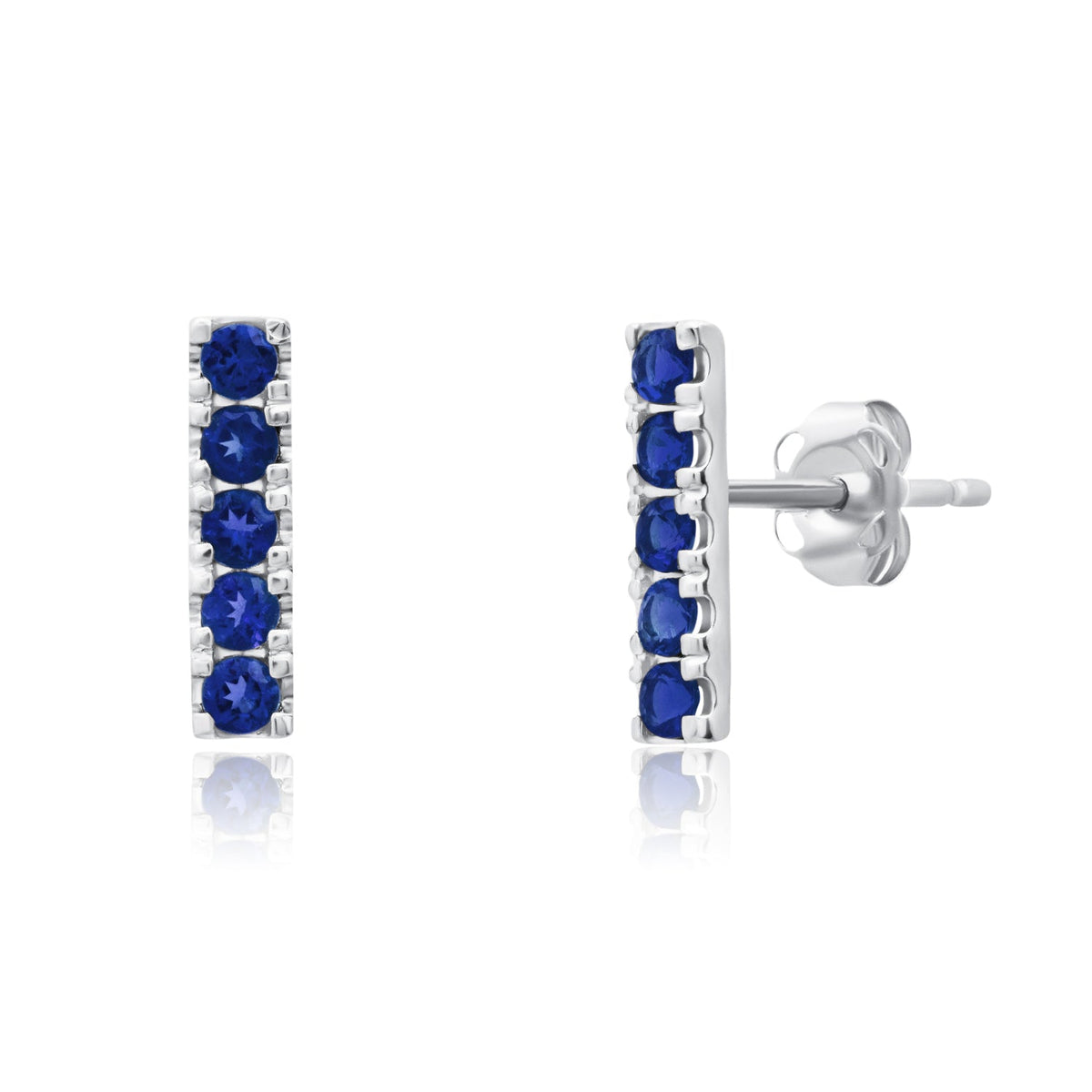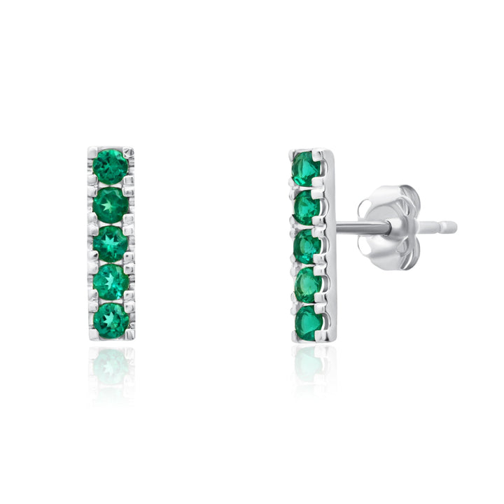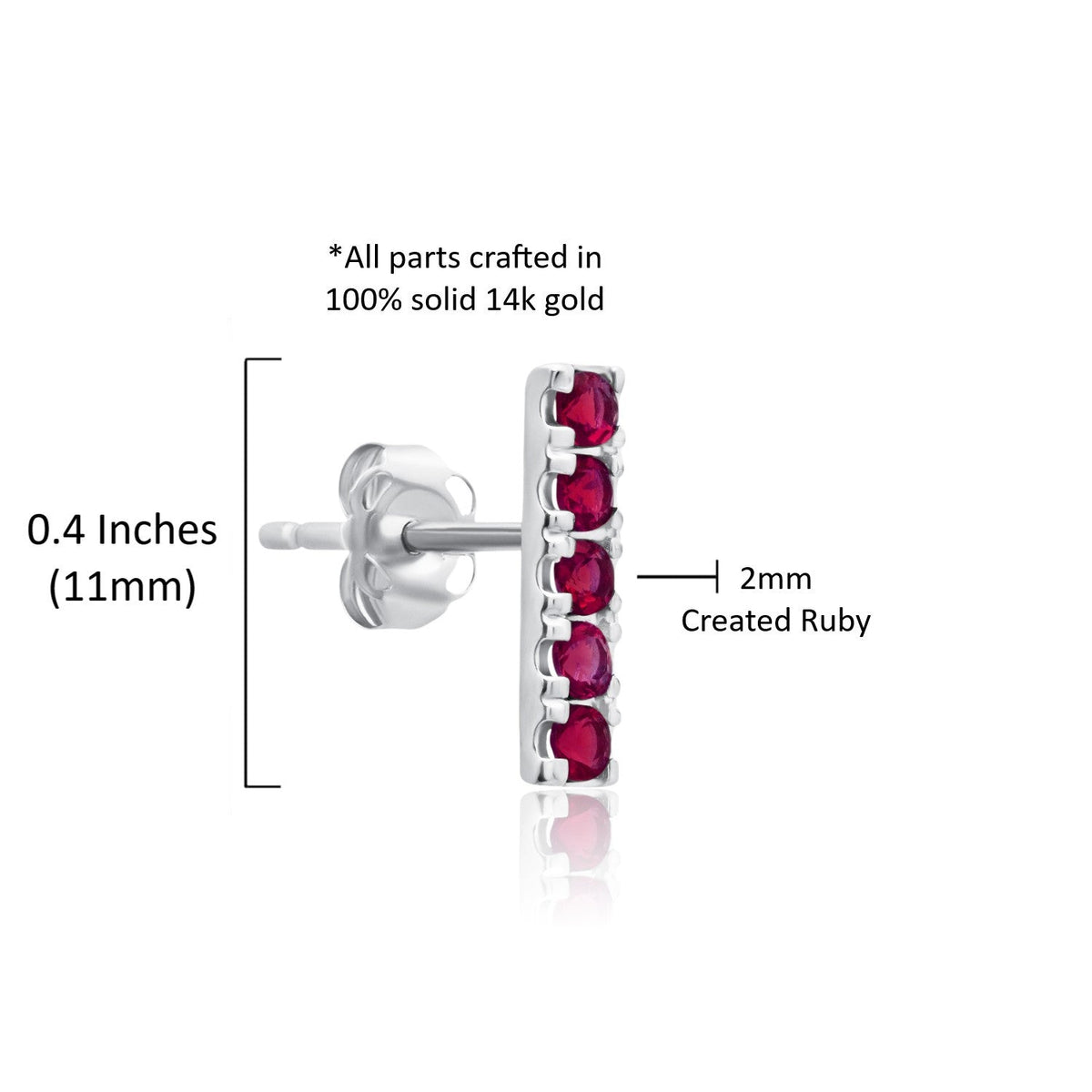Handcrafted in 14k white gold, these bar stud earrings feature 2mm premium created opal gemstones in a sturdy prong setting. Secured with push-back closures.