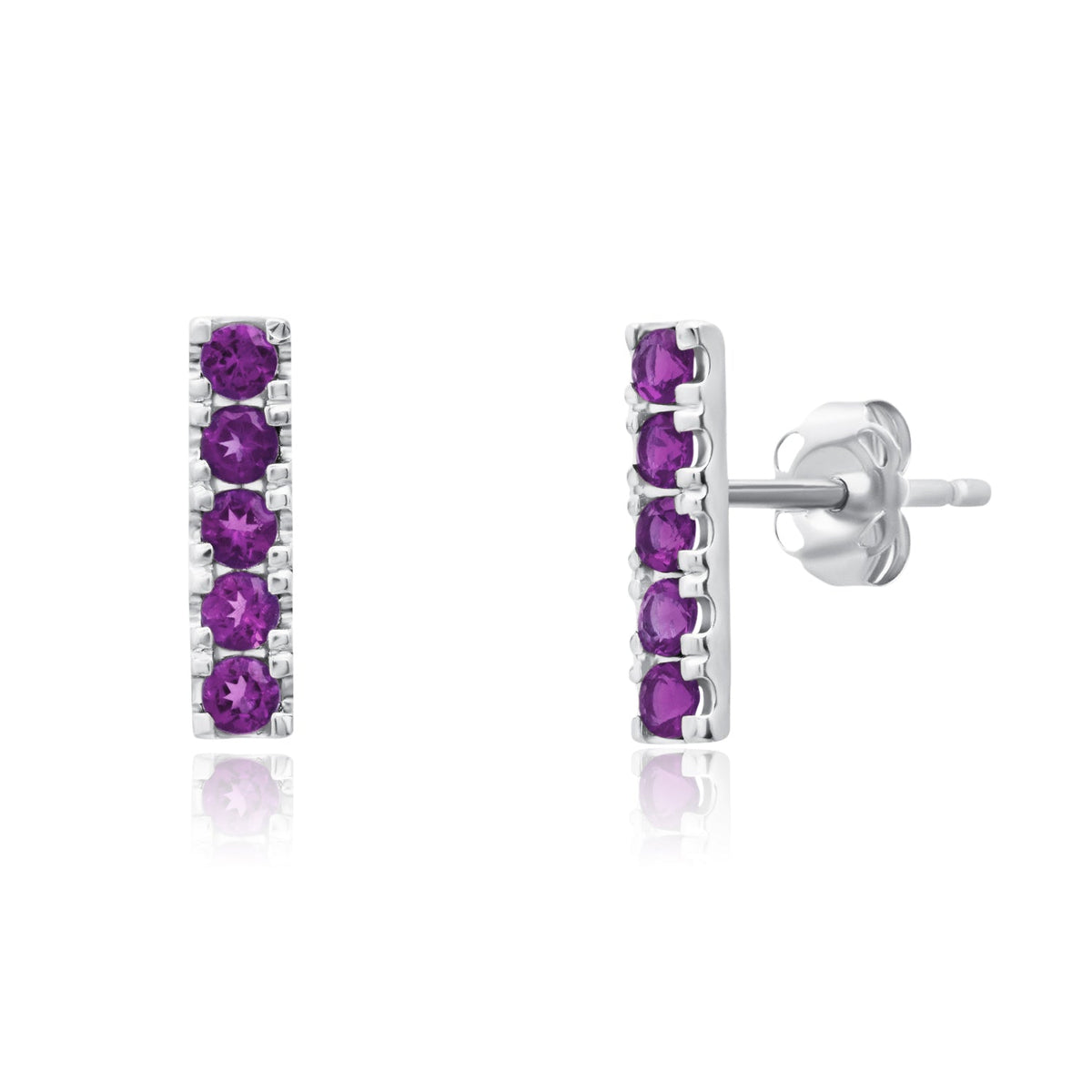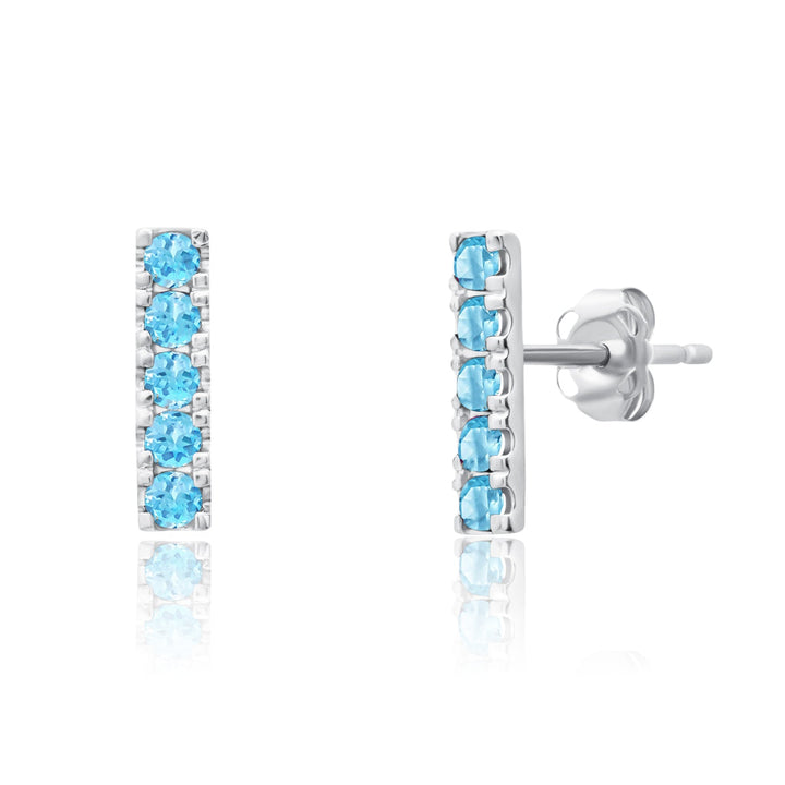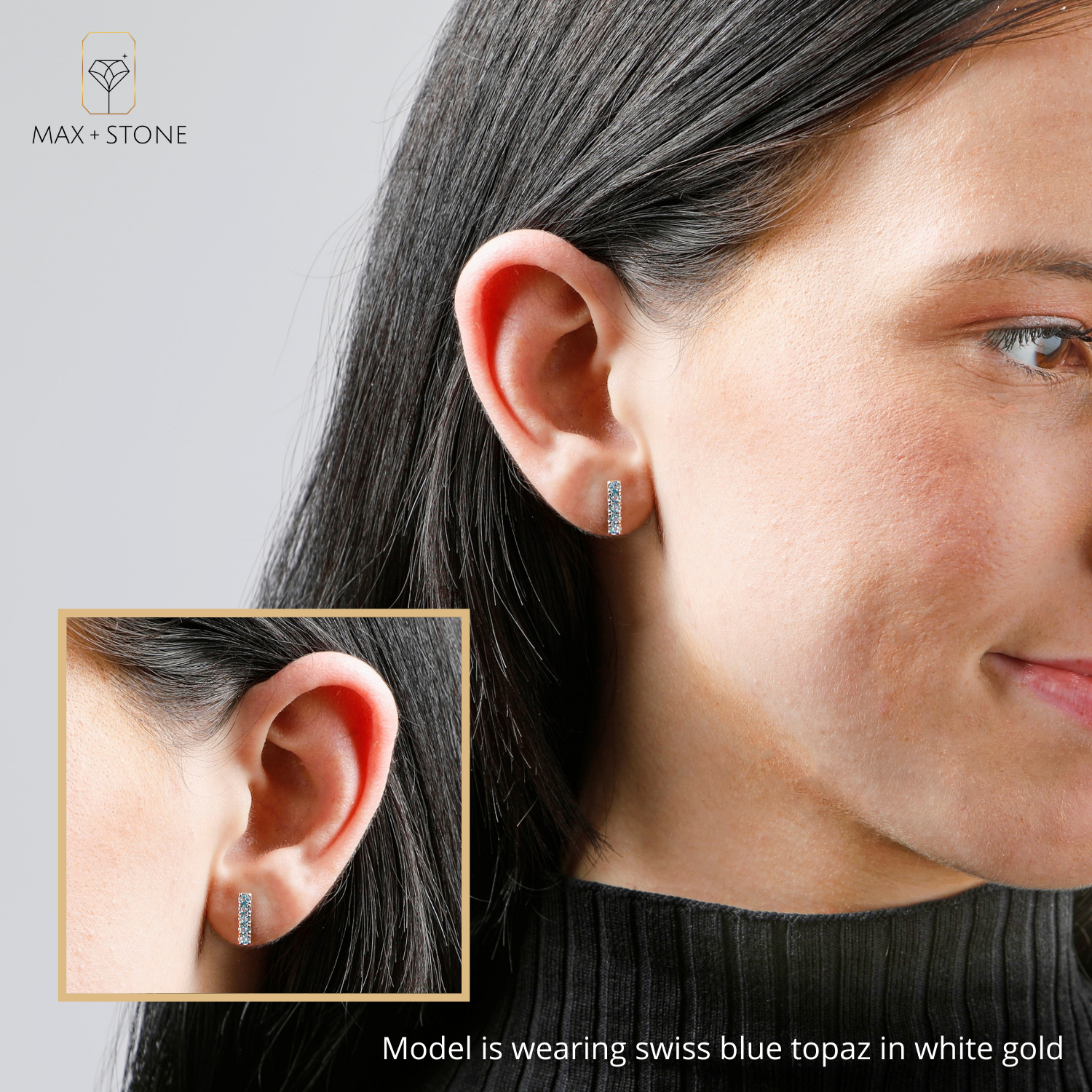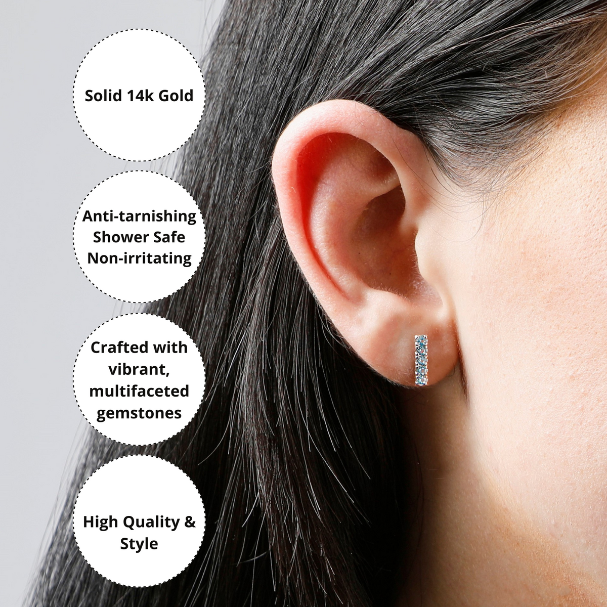 14k White Gold Small 2mm Gemstone Bar Stud Earrings with Push Backs