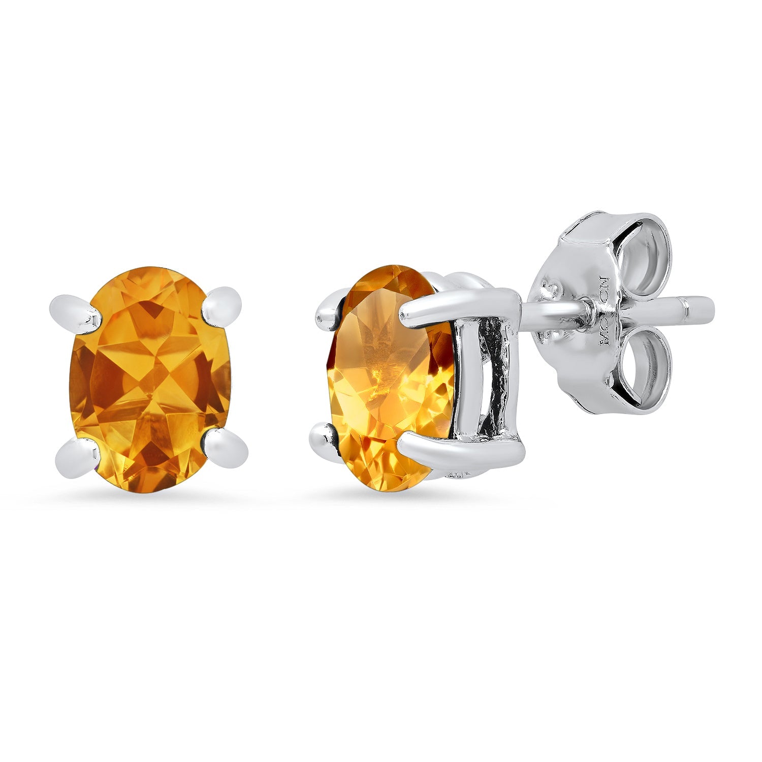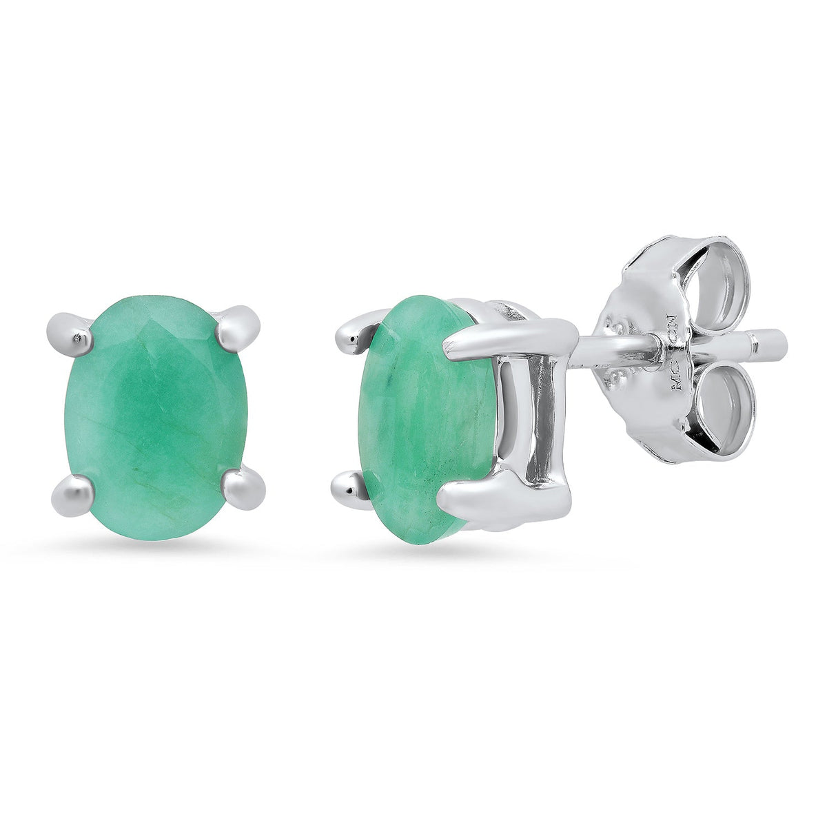 Handcrafted in 925 sterling silver, these stud earrings feature 7x5mm oval-cut genuine gemstones in a prong-set basket design. Secured with butterfly push-back closures.