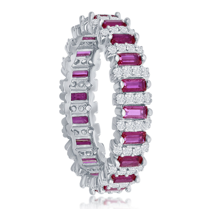 Sterling Silver Round & Baguette Eternity Band Ring - Simulated Ruby