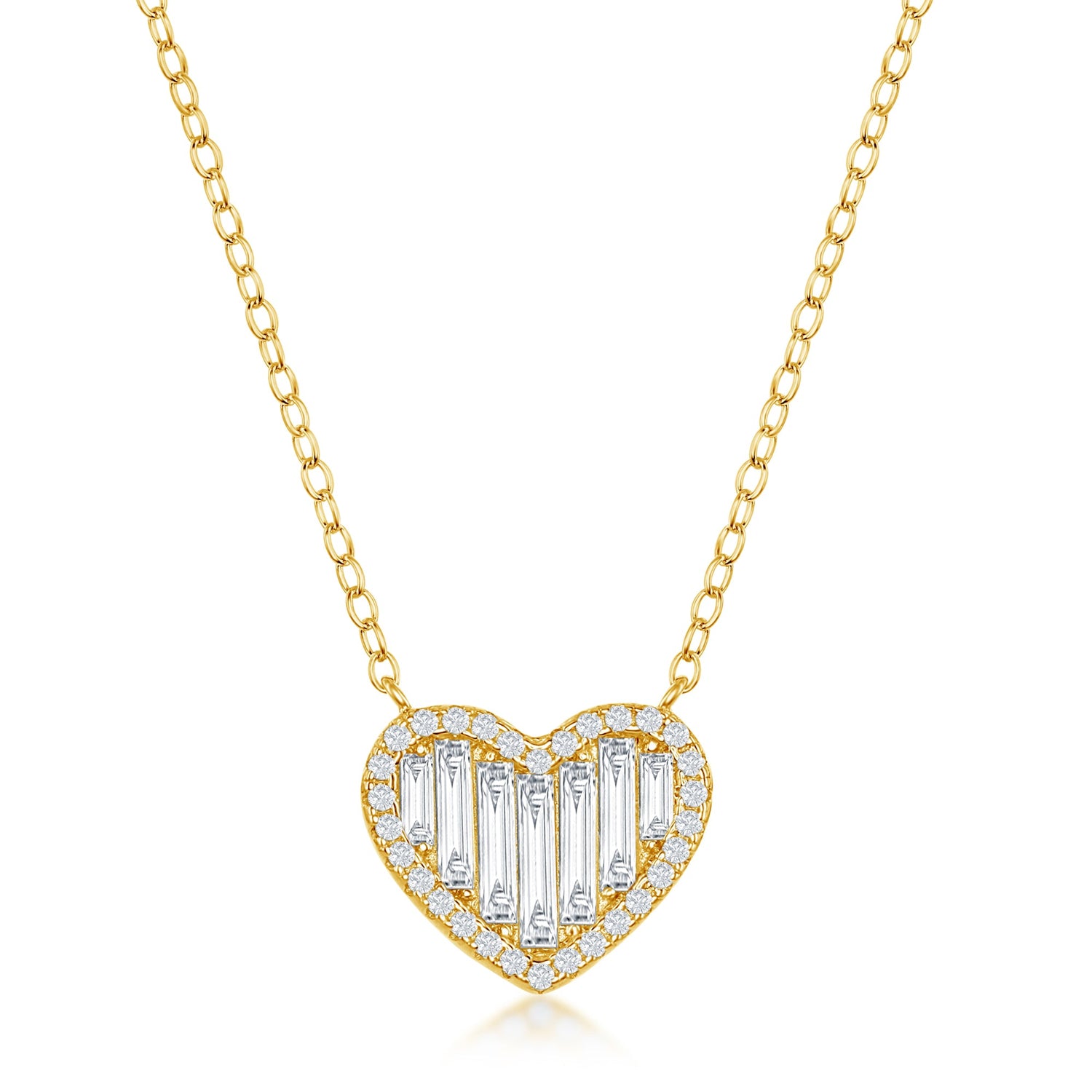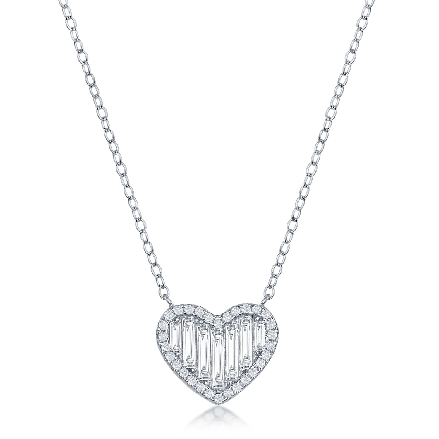 Sterling Silver Round and Baguette CZ Heart Necklace