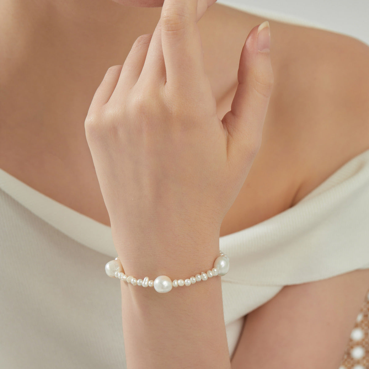 The Kylie Bracelet by Joey Baby exudes timeless elegance with its mix of large and small pearls, creating a sophisticated and dynamic design. Handcrafted in New York City, this bracelet adds a touch of luxury to any look.