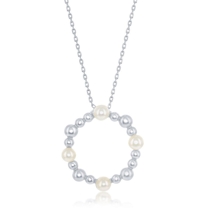 Sterling Silver Freshwater Pearl and Beaded Circle Necklace