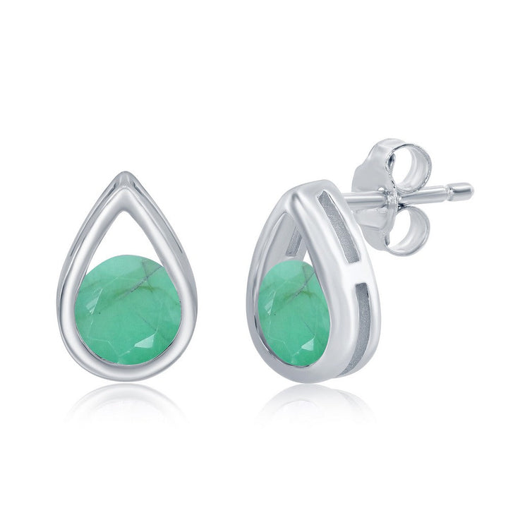 Sterling Silver Pearshaped Earrings W/Round 'May Birthstone' Gemstone Studs - Emerald