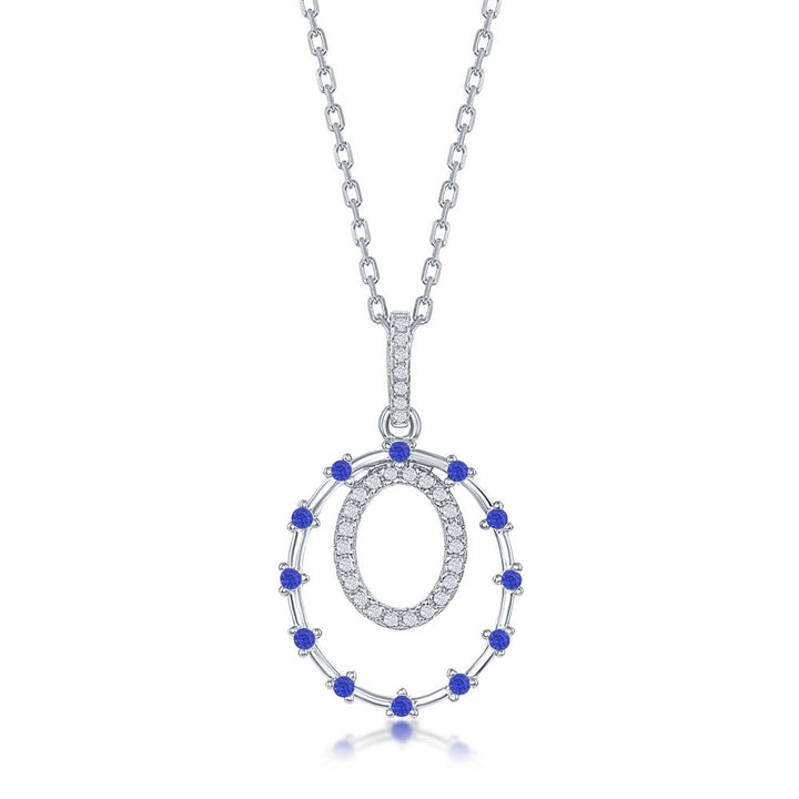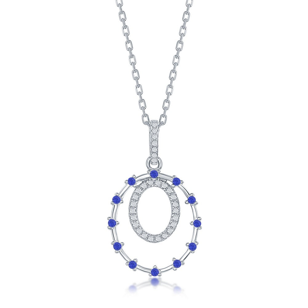 Sterling Silver Double Circle, Blue CZ Pendant