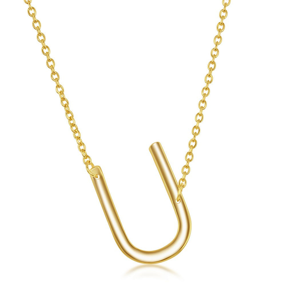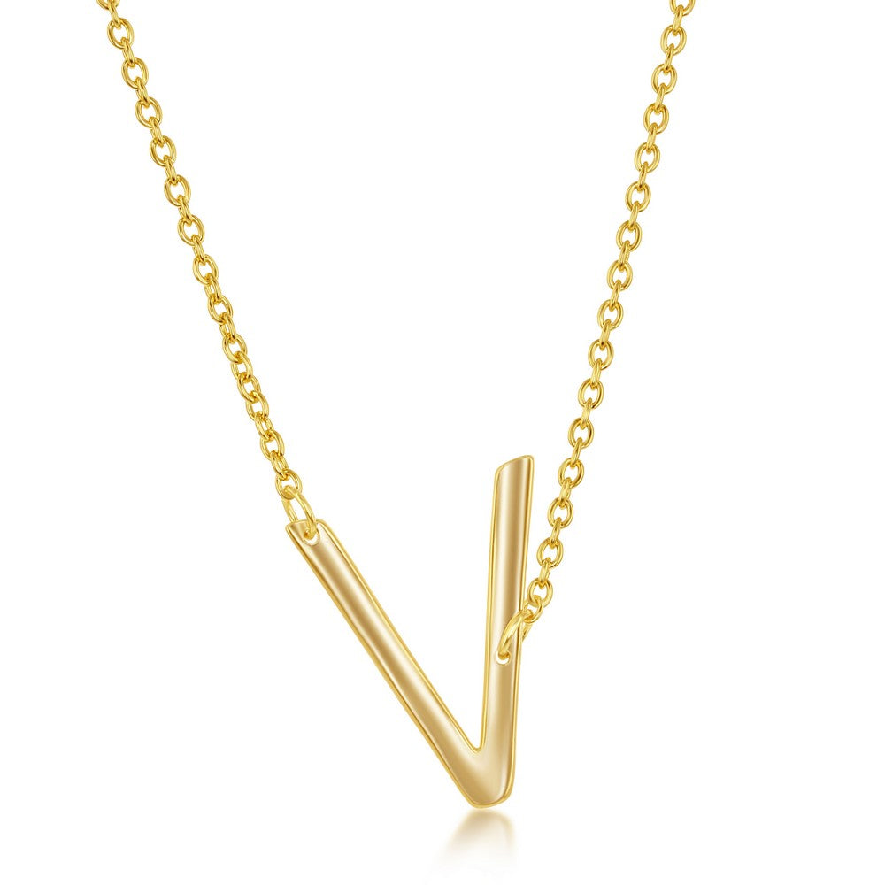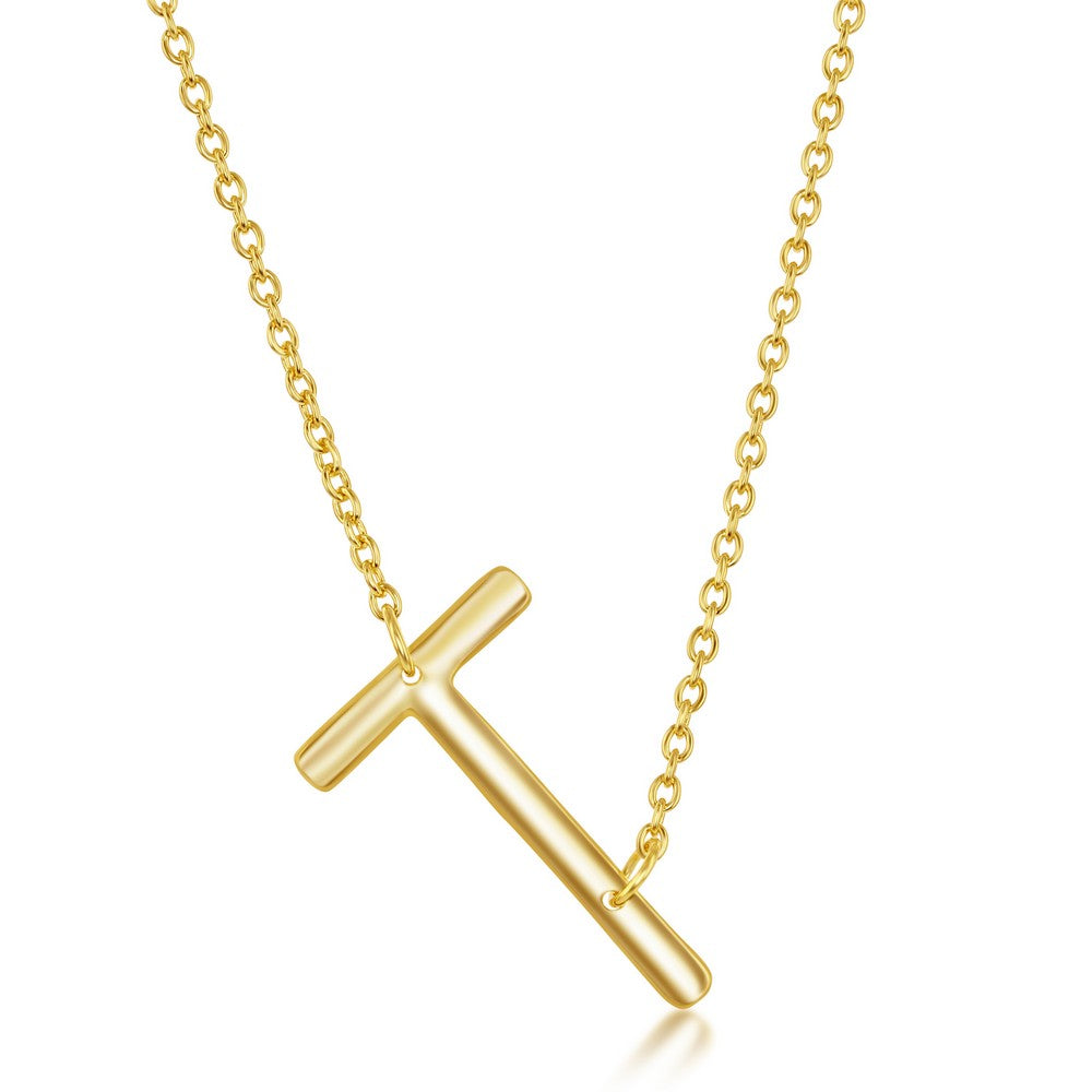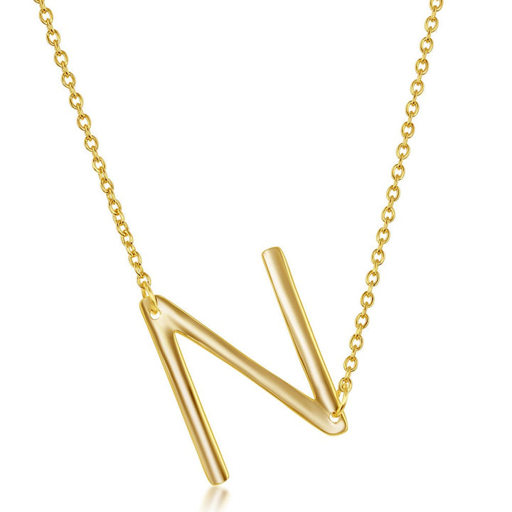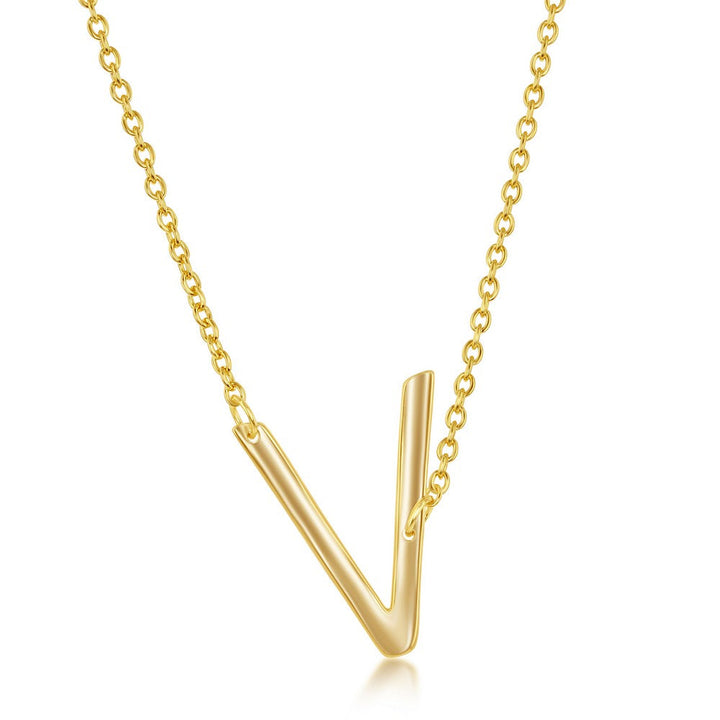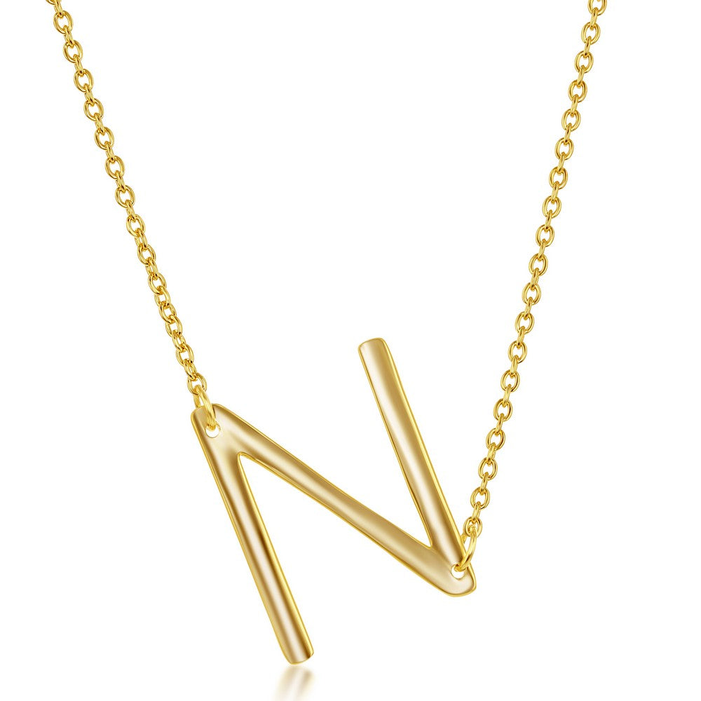 Sterling Silver Sideways Initial Necklace - Gold Plated