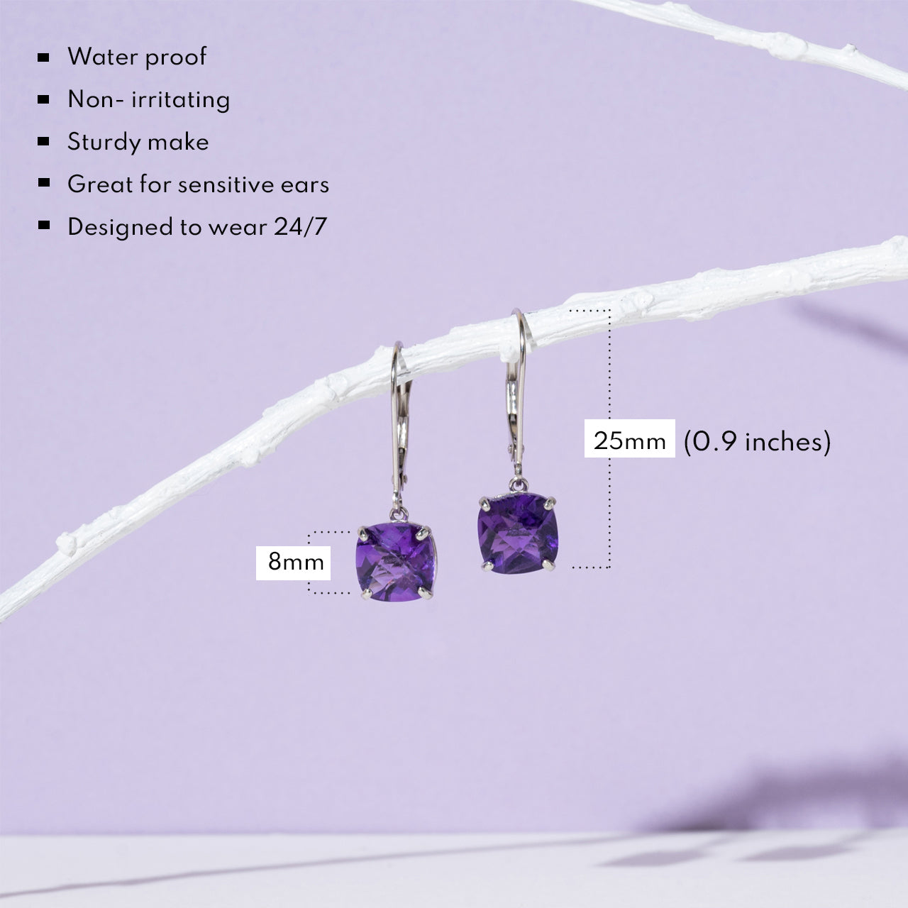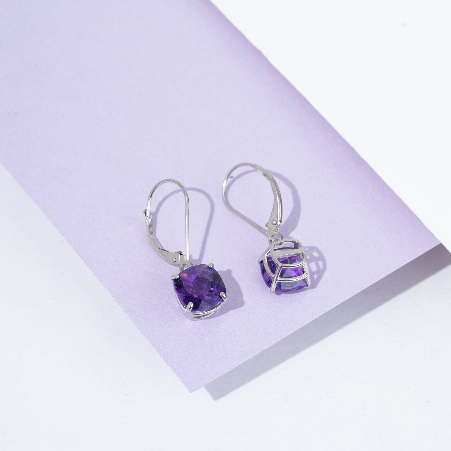 Crafted in solid 14k white gold, including leverbacks and earring baskets (not gold-plated or gold-filled). Features 8mm gemstone dangles in a secure leverback setting.