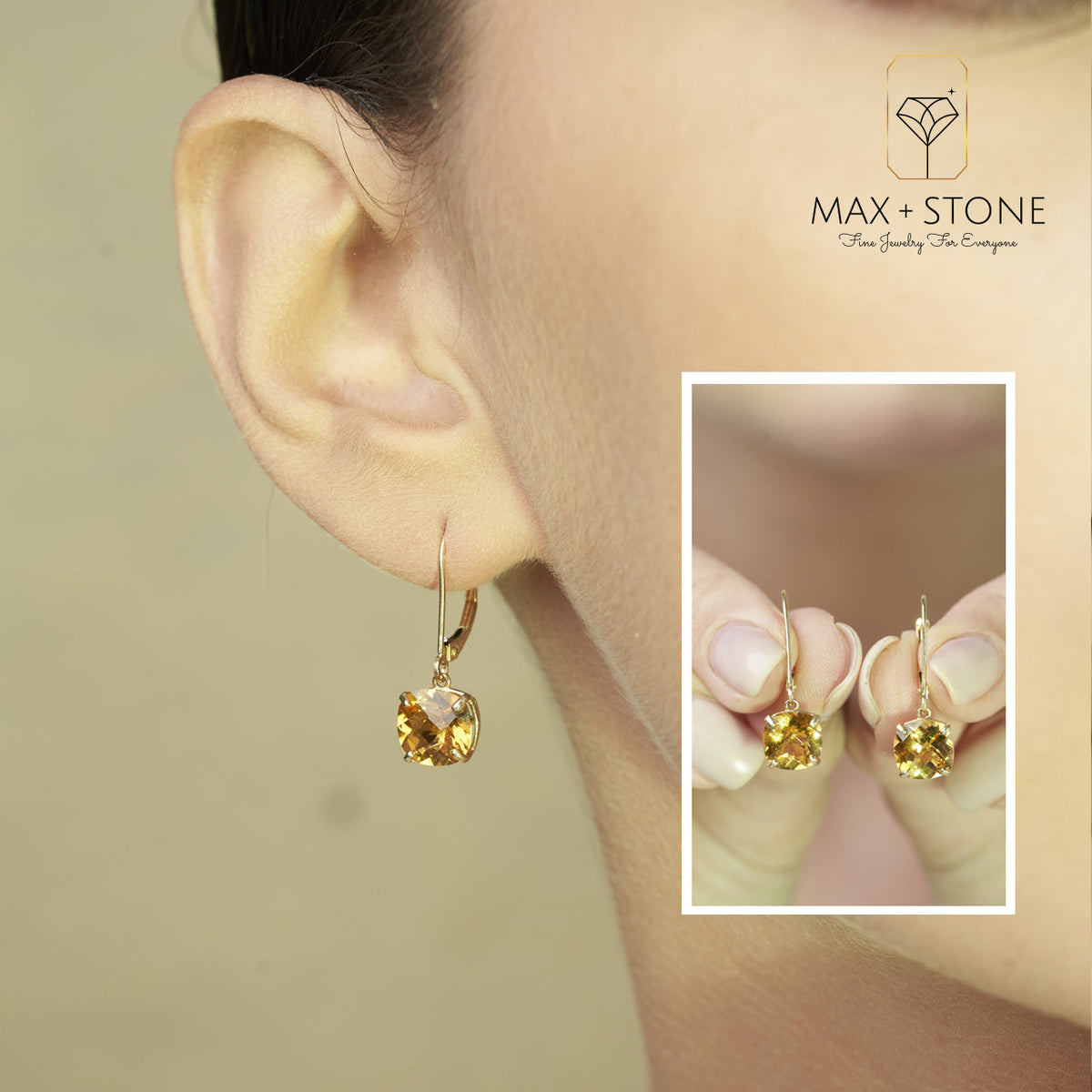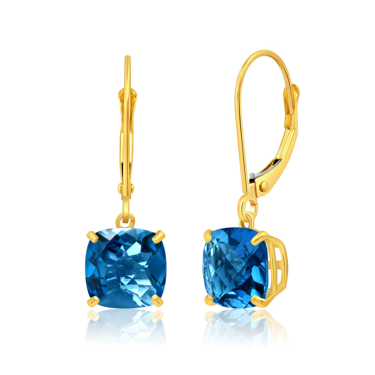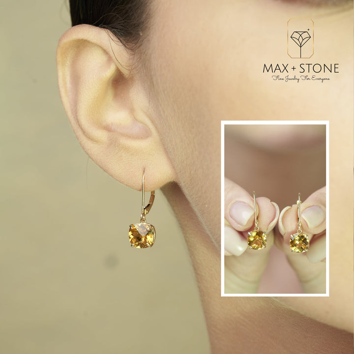 14k Solid Yellow Gold Gemstone Dangle Leverback Earrings (8mm)
