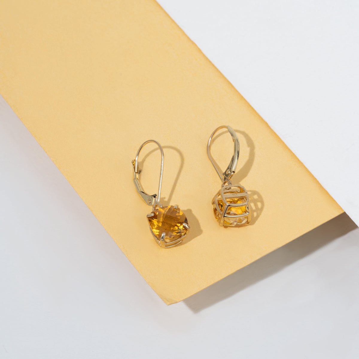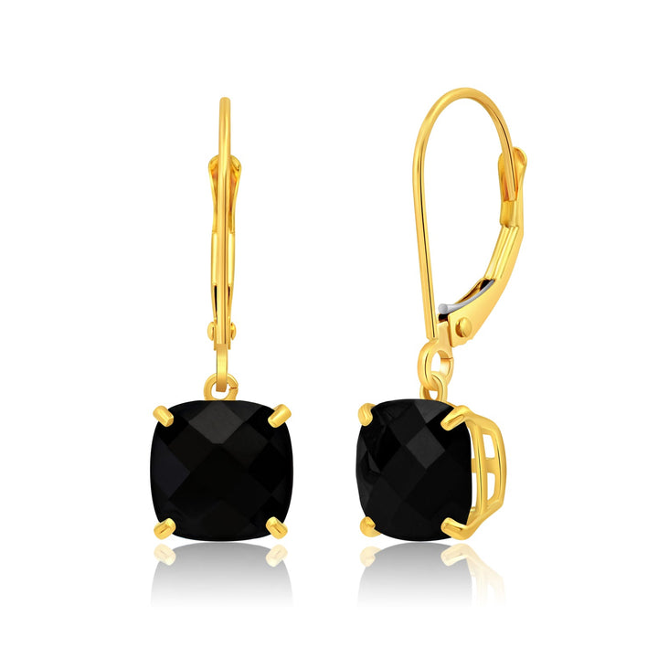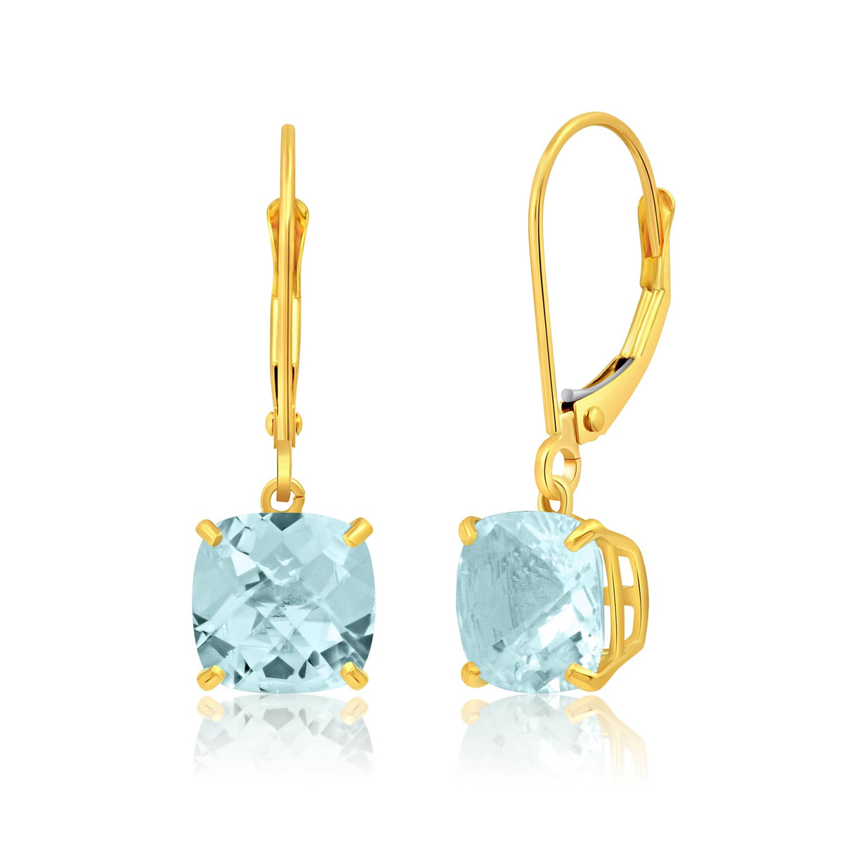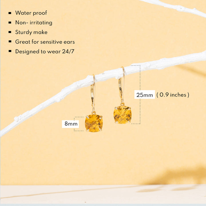 14k Solid Yellow Gold Gemstone Dangle Leverback Earrings (8mm)