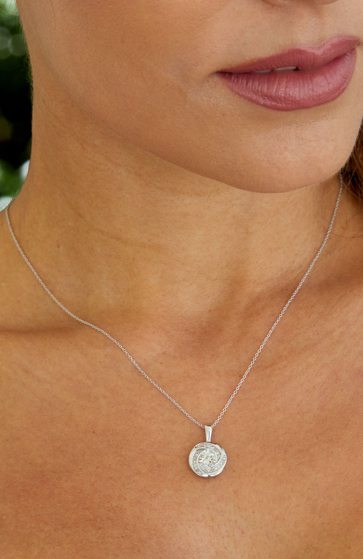 Crafted in sterling silver with diamond accents. Suspended from a sterling silver chain.