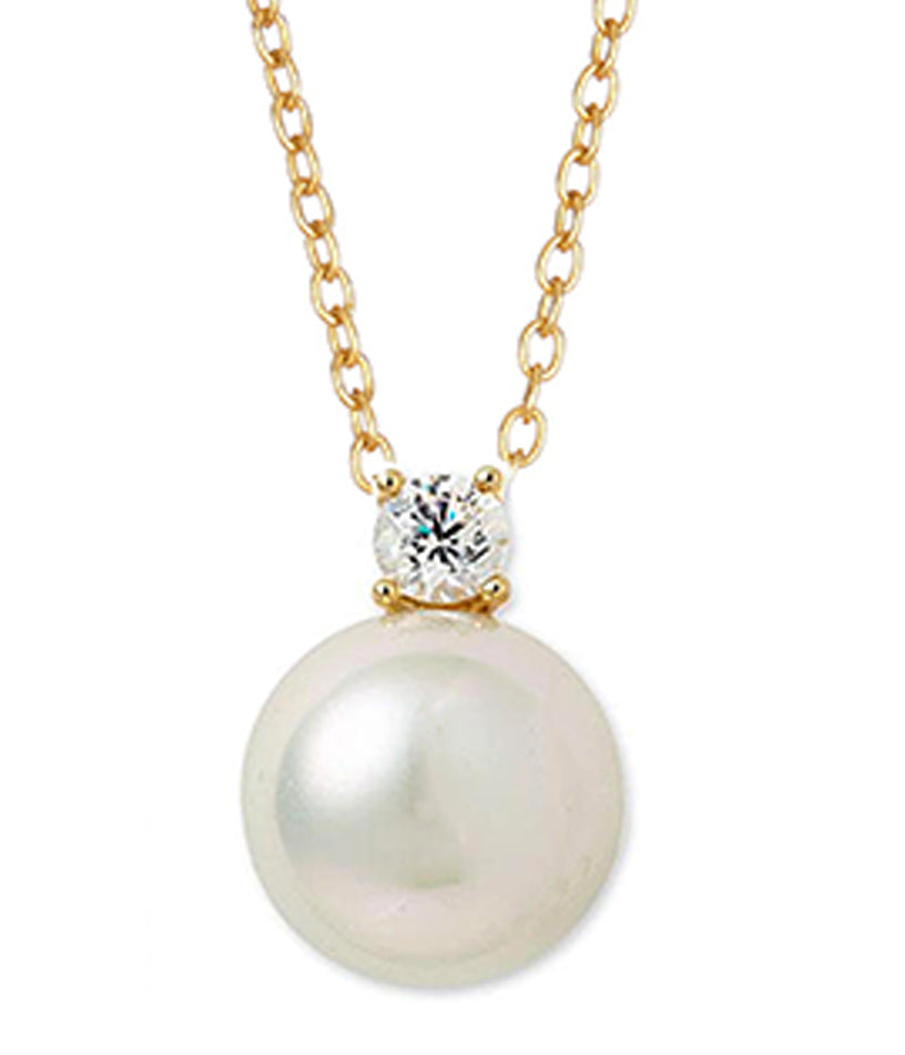 Crafted in sterling silver with an 8-8.5mm Swarovski pearl and a bezel-set cubic zirconia accent. Suspended from a delicate sterling silver chain.