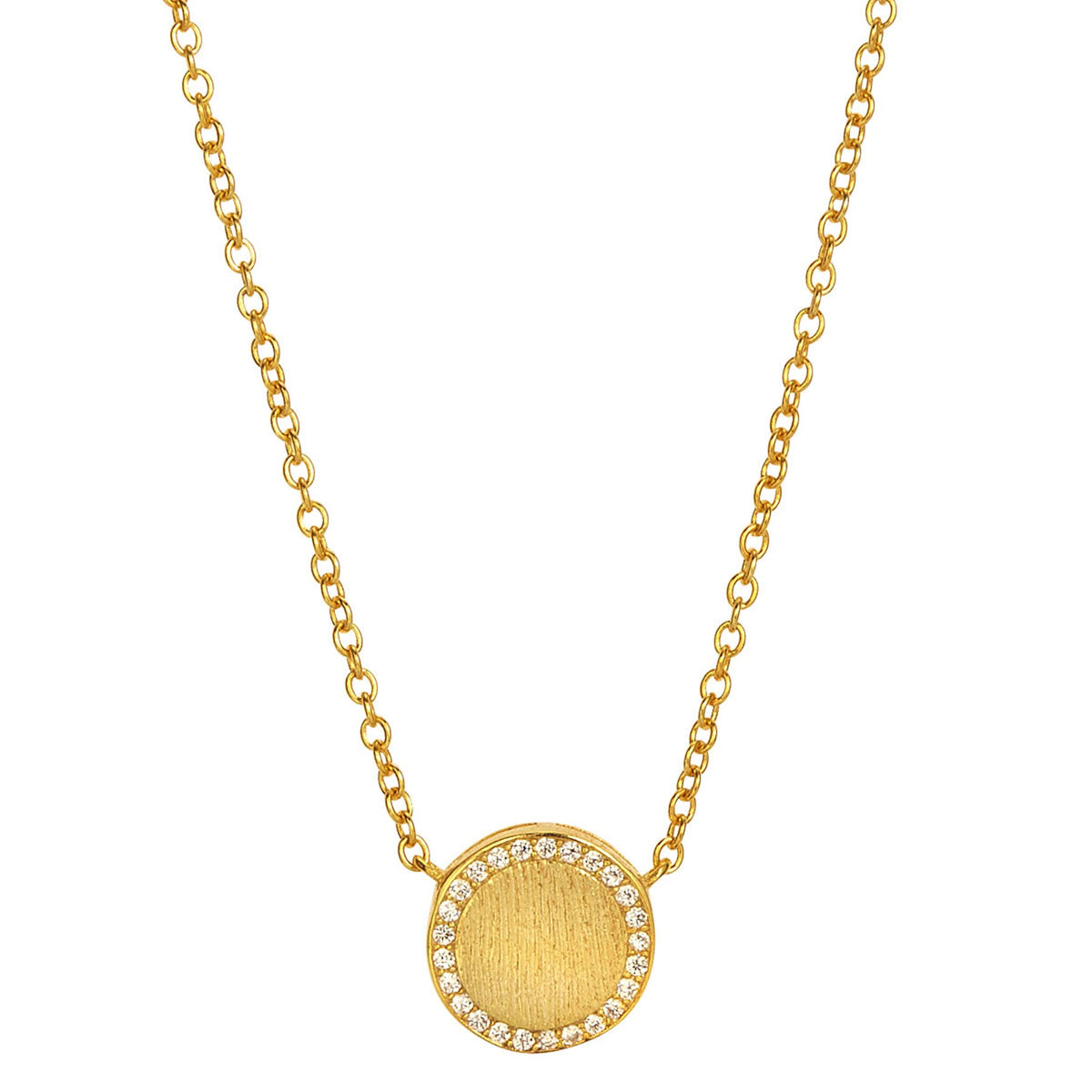 Crafted in 18k gold vermeil over sterling silver with CZ accents. Suspended from a fine vermeil chain.