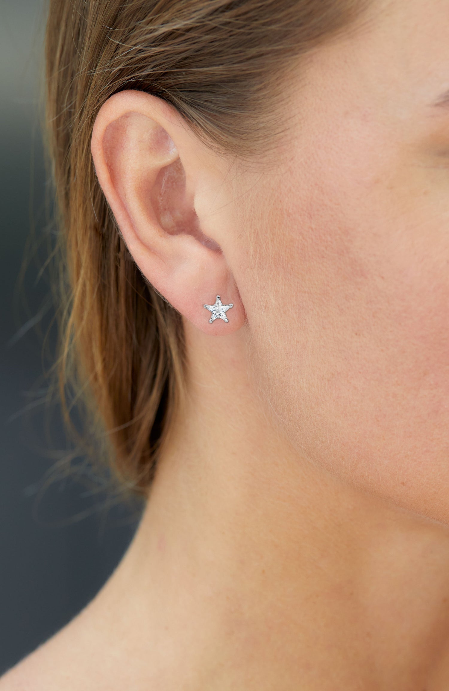 Crafted in sterling silver with an 8mm star-shaped stud design. Secured with post/clutch backings.