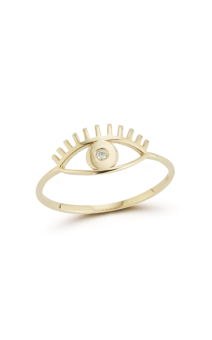 This 14K Gold & Diamond Evil Eye Ring by Ember Fine Jewelry is a timeless protective talisman, featuring a brilliant round diamond set within the eye’s iris. Designed to ward off negativity and bring good fortune, this delicate ring is an elegant symbol of strength and protection.