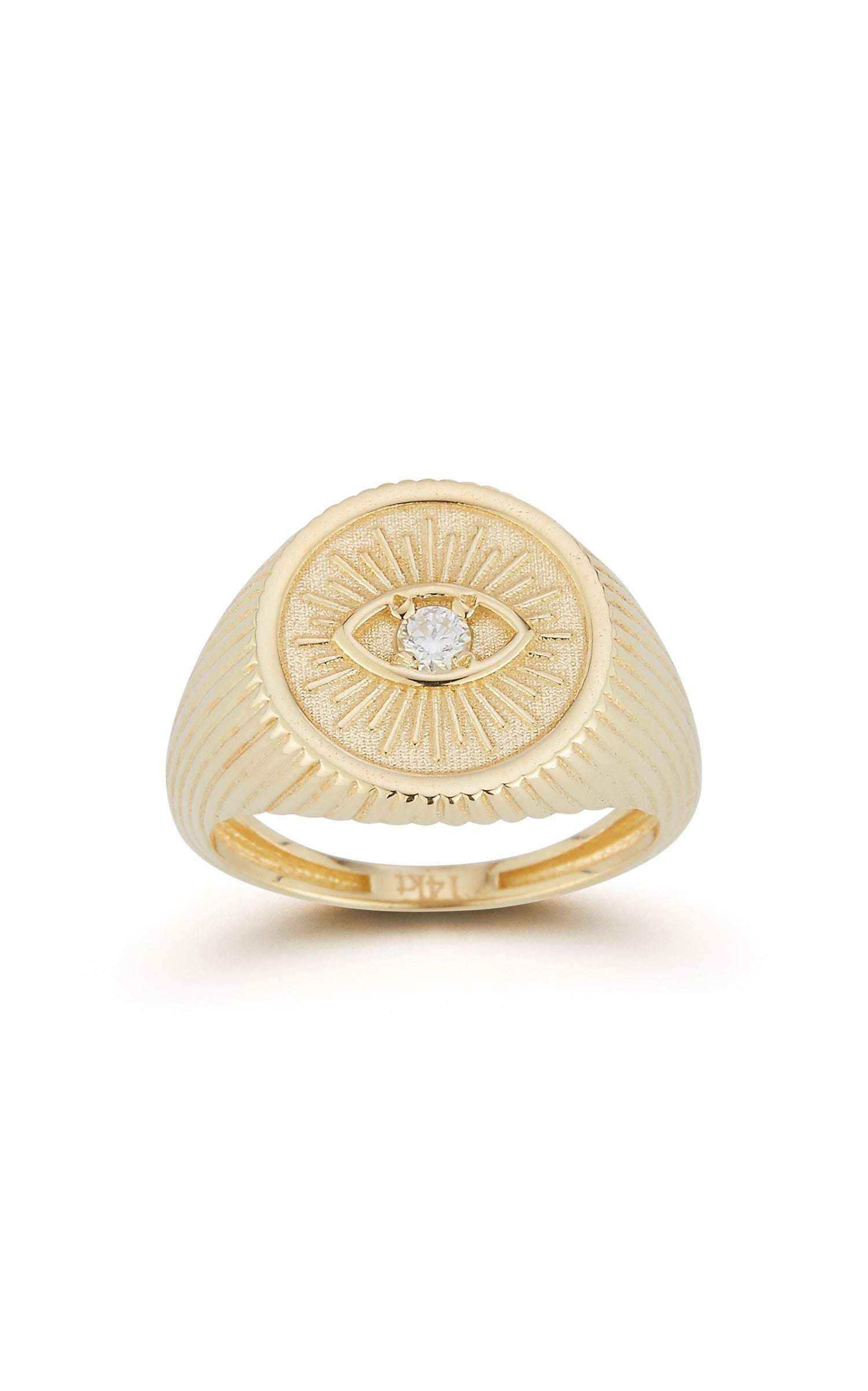 This 14K Gold & Diamond Evil Eye Signet Ring by Ember Fine Jewelry is a bold and meaningful piece designed to ward off negativity while making a chic statement. The evil eye symbol has long been revered for its protective qualities, offering both style and spiritual significance. Crafted with meticulous attention to detail, this handcrafted ring transitions seamlessly from day to night, complementing any outfit with its elegant charm.