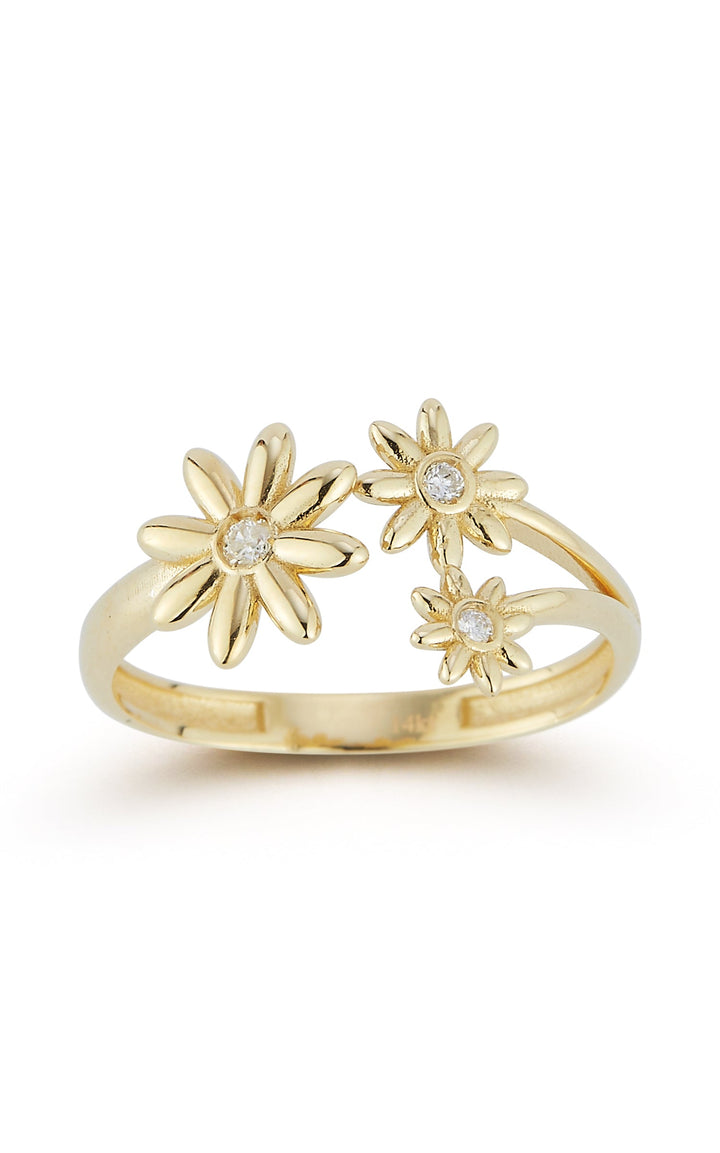 This 14K Gold & Diamond Triple Daisy Ring by Ember Fine Jewelry captures the charm of delicate floral motifs in a dazzling, contemporary design. Three bezel-set diamonds form the heart of each daisy, adding a subtle yet brilliant sparkle. Feminine and versatile, this ring can be worn as a statement piece or stacked effortlessly with other favorites.