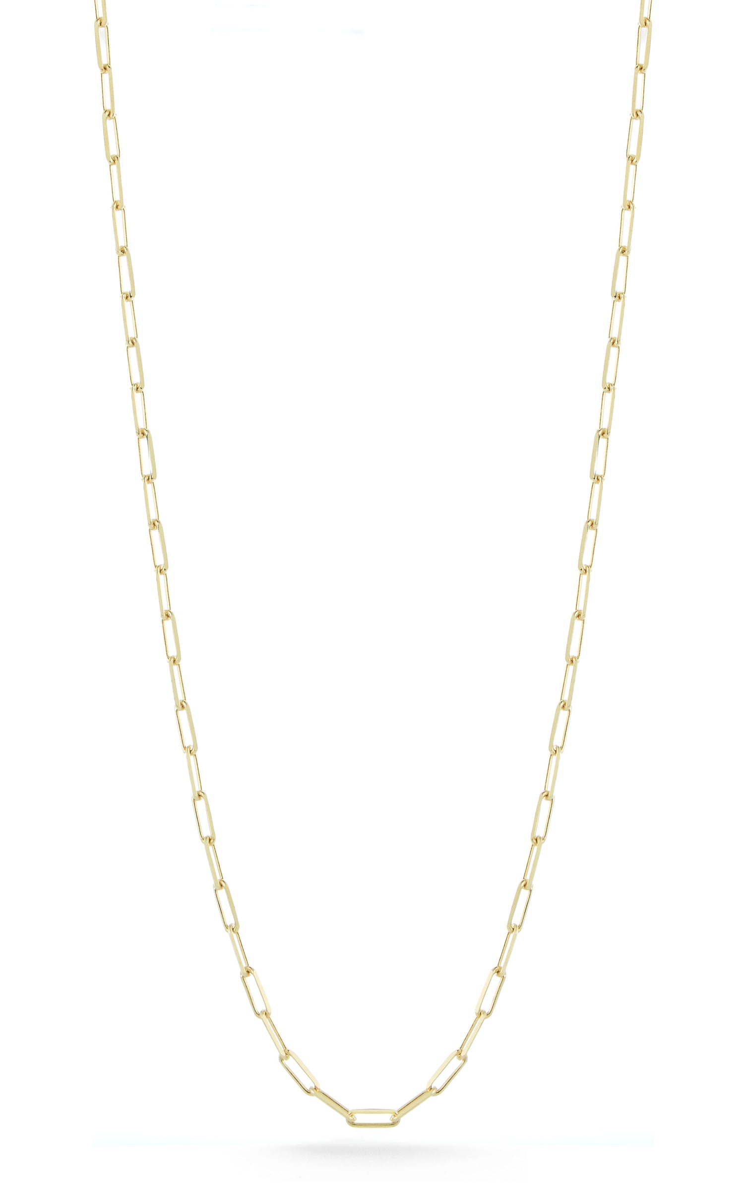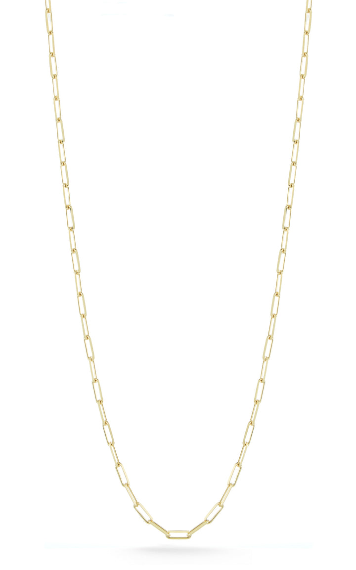 This 14K Gold Paperclip Chain Necklace by Ember Fine Jewelry is a sleek and modern take on a timeless staple. With its bold yet lightweight links, this chain adds effortless elegance to any look. Whether worn alone or layered with pendants and other chains, this piece is a must-have for any jewelry collection.