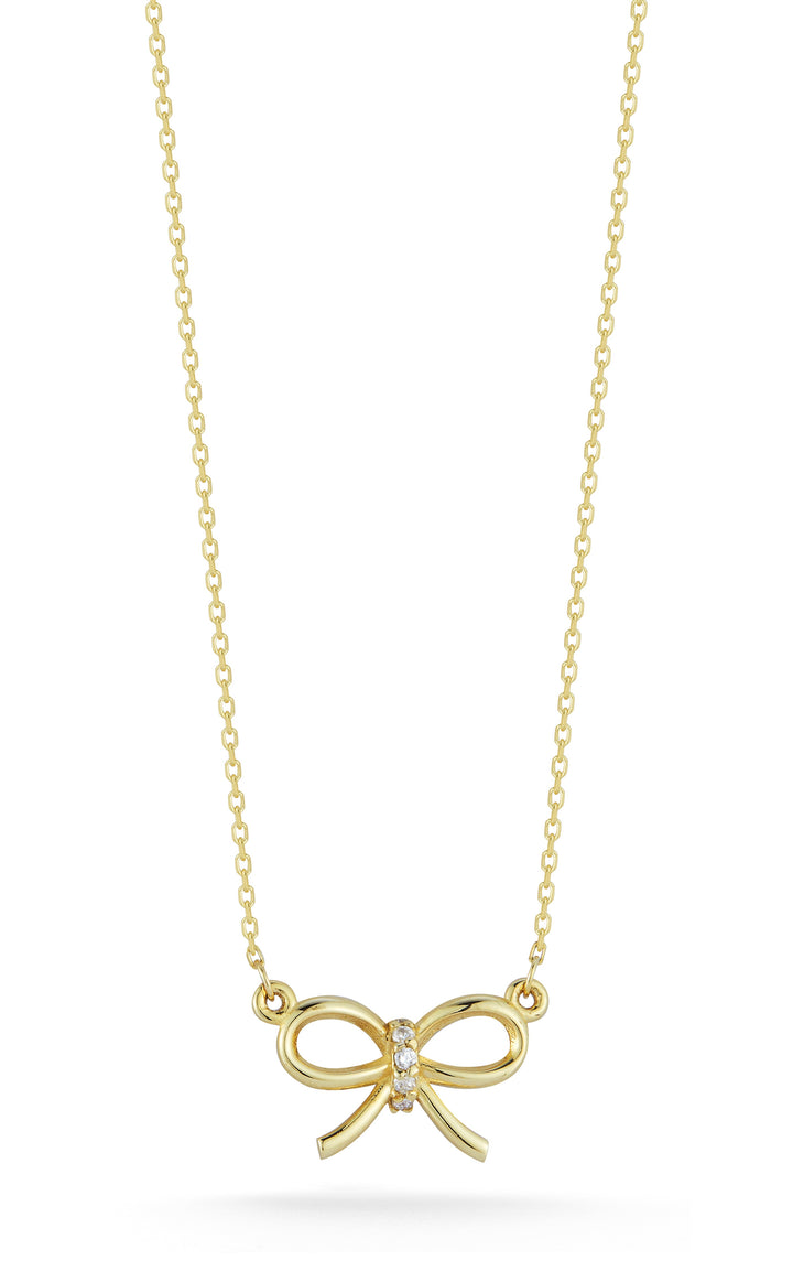 This 14K Gold & Diamond Bow Necklace by Ember Fine Jewelry brings a sparkling touch to a beloved symbol of elegance. Set with shimmering natural diamonds, the delicate bow pendant exudes refinement and grace. Whether styled for a special occasion or layered with other chains, this piece is effortlessly chic.