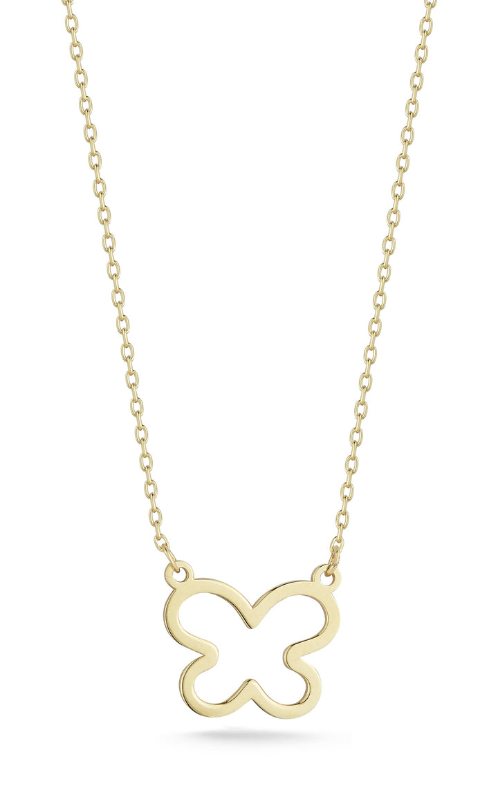 This 14K Gold Butterfly Necklace by Ember Fine Jewelry is a delicate and meaningful piece symbolizing transformation, hope, and renewal. Its sleek and refined design makes it a timeless accessory that can be styled effortlessly with any look.