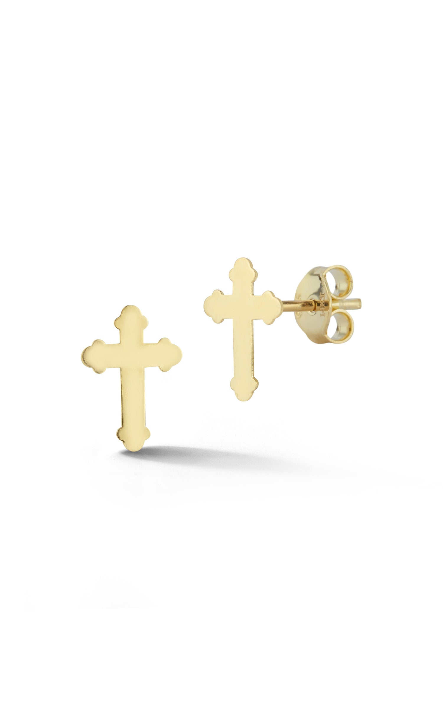 These 14K Italian Gold Cross Stud Earrings by Ember Fine Jewelry feature a timeless budded cross design, symbolizing the trinity. Crafted in solid gold, these delicate studs offer a meaningful yet minimal addition to any jewelry collection. Perfect for daily wear or as a sentimental gift.