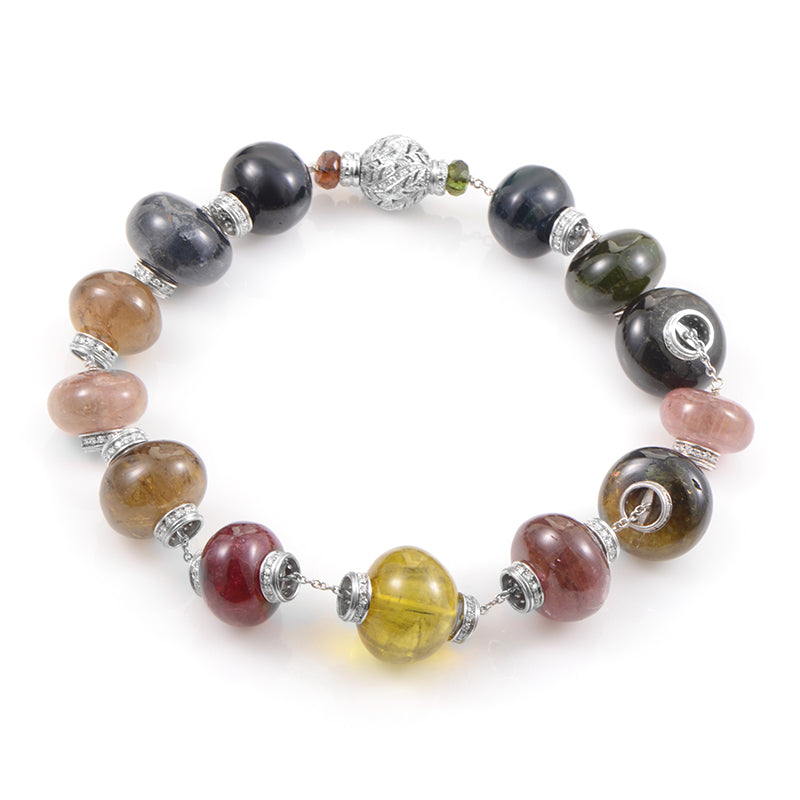 Italian Collection 18K White Gold Multi-Tourmaline & Diamond Choker Necklace