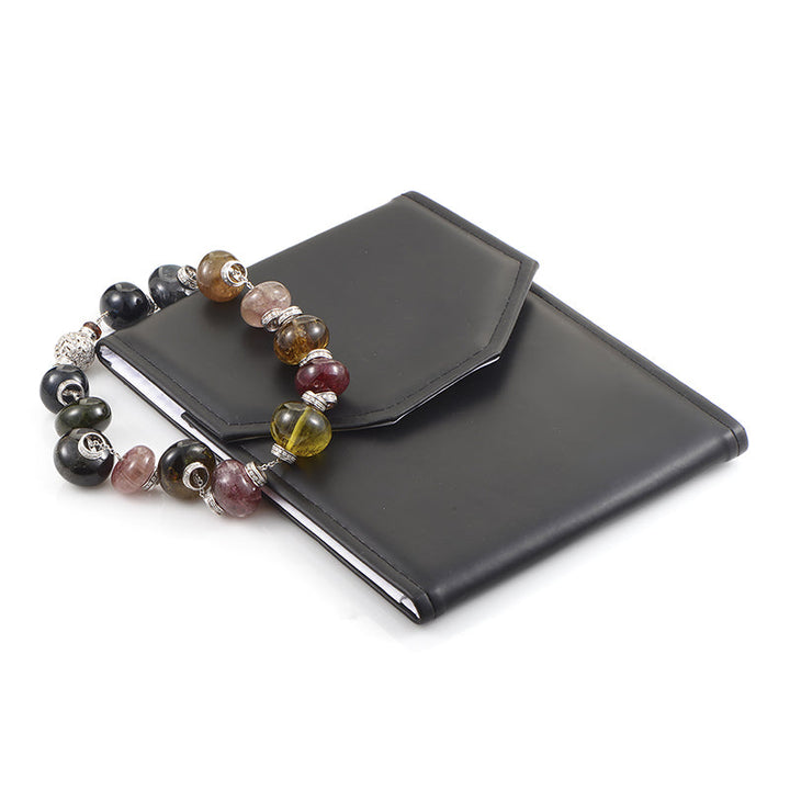 This Italian Collection 18K White Gold Multi-Tourmaline & Diamond Choker Necklace by Luxury Bazaar is a vibrant masterpiece. A mesmerizing array of natural tourmalines in varying hues forms an elegant strand, connected by an intricate 18K white gold chain adorned with sparkling diamonds. With 4.90 carats of diamonds accentuating its brilliance, this choker is a stunning display of color and craftsmanship.