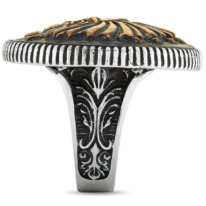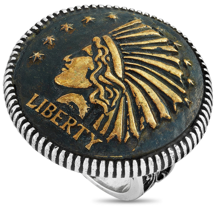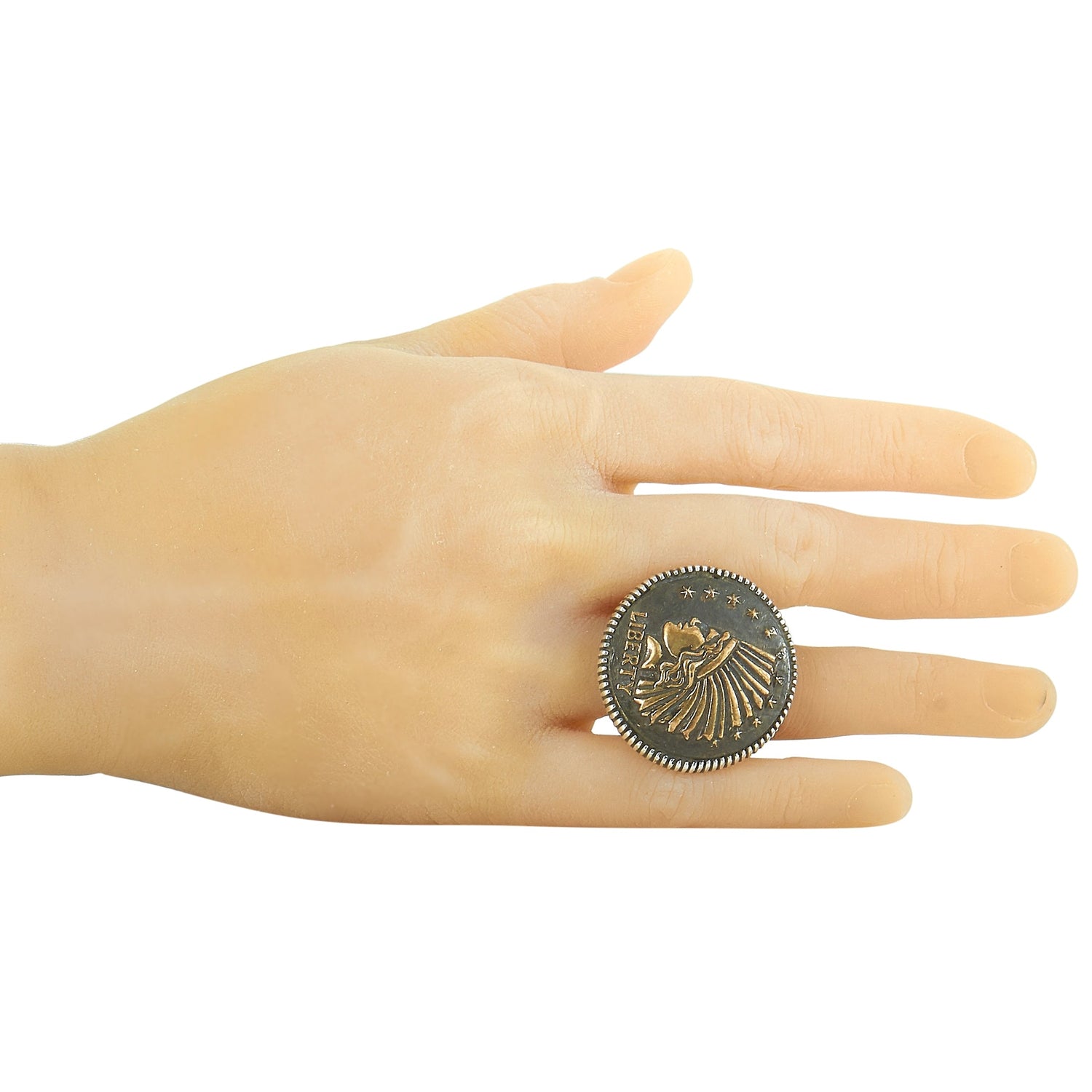 Crafted in sterling silver. Band thickness: 6mm; Top height: 7mm. Top dimensions: 37 x 35mm. Weight: 54.6 grams. Includes manufacturer’s box.
