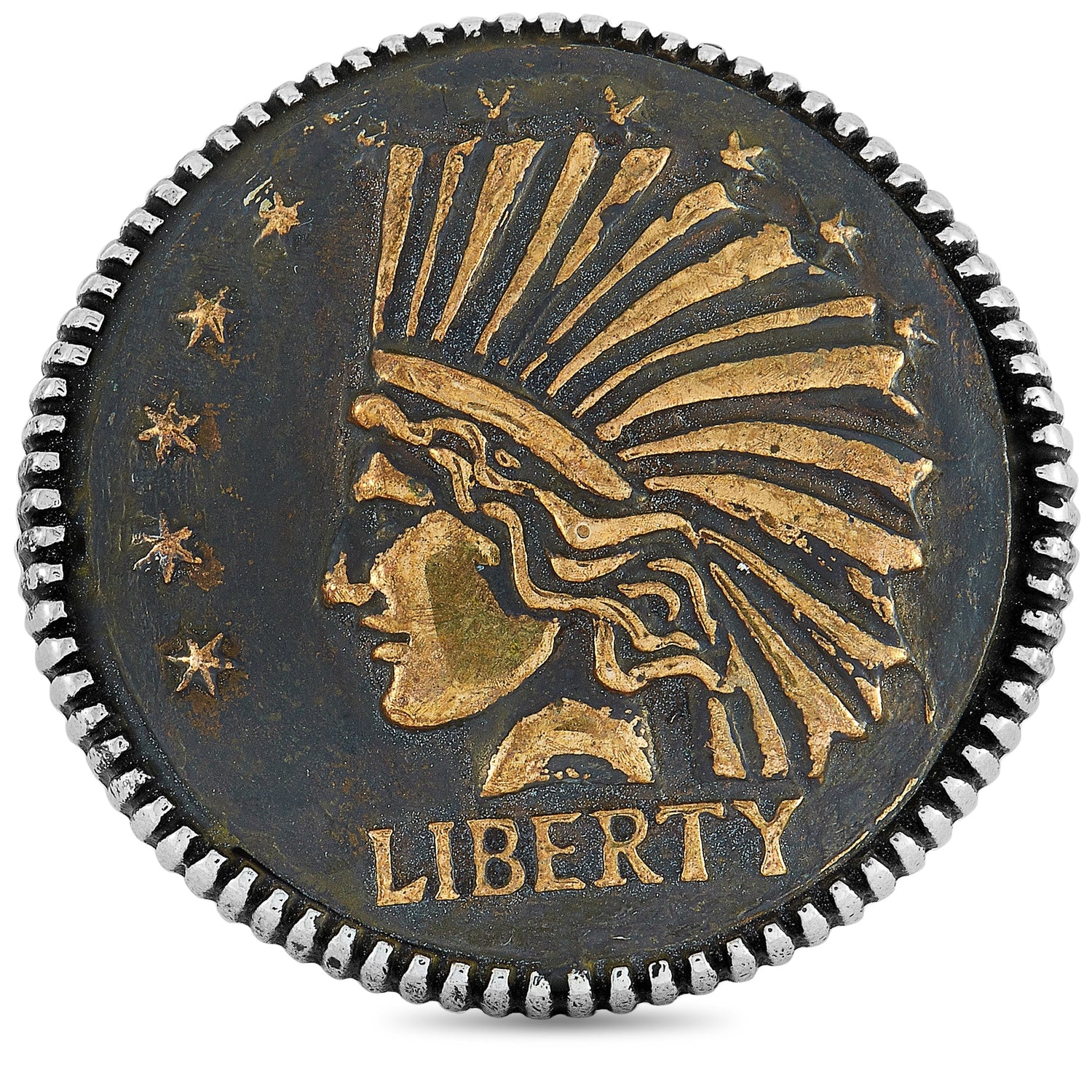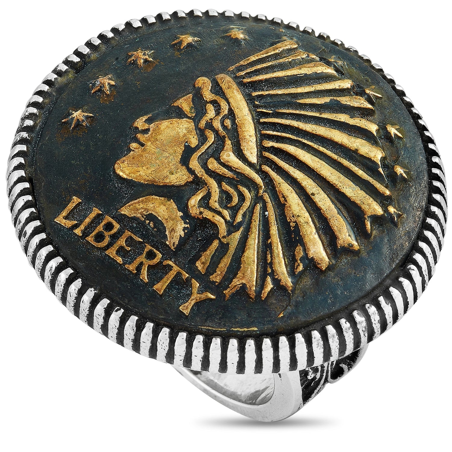 This Silver Statement Headdress Ring by King Baby is an audacious expression of bold artistry. Featuring an oversized sculptural design, this ring is crafted in solid silver with a substantial presence. Weighing 54.6 grams, it offers a striking silhouette with intricate detailing that showcases King Baby’s signature craftsmanship.