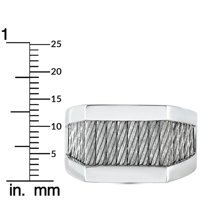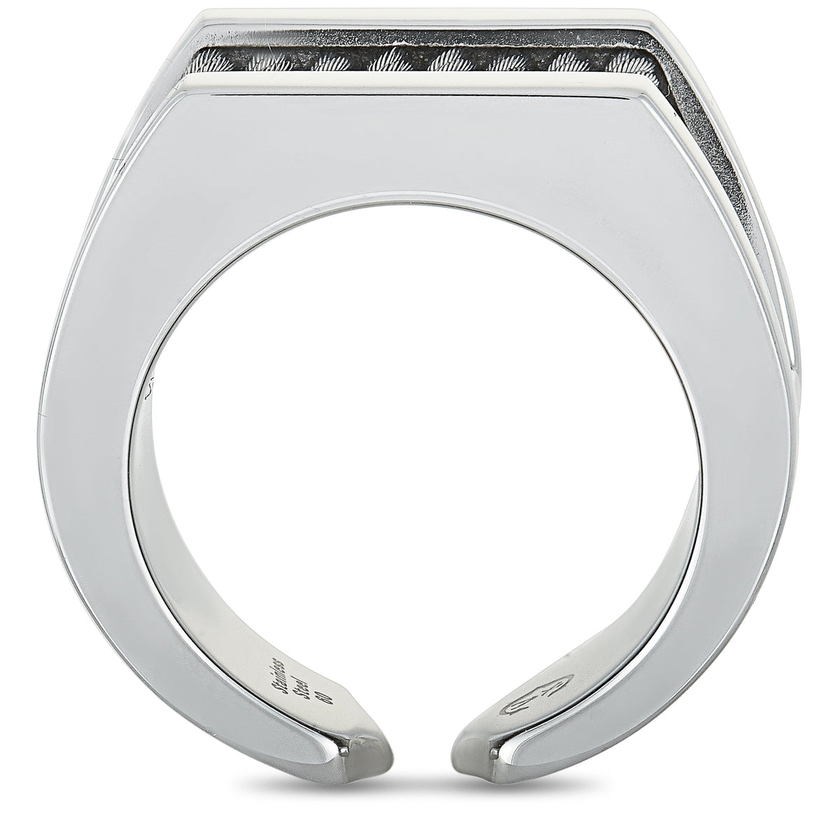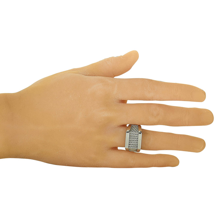 Crafted in stainless steel. Band thickness: 6mm. Top height: 5mm. Top dimensions: 25 x 14mm. Weight: 14.8 grams. Includes manufacturer’s box.