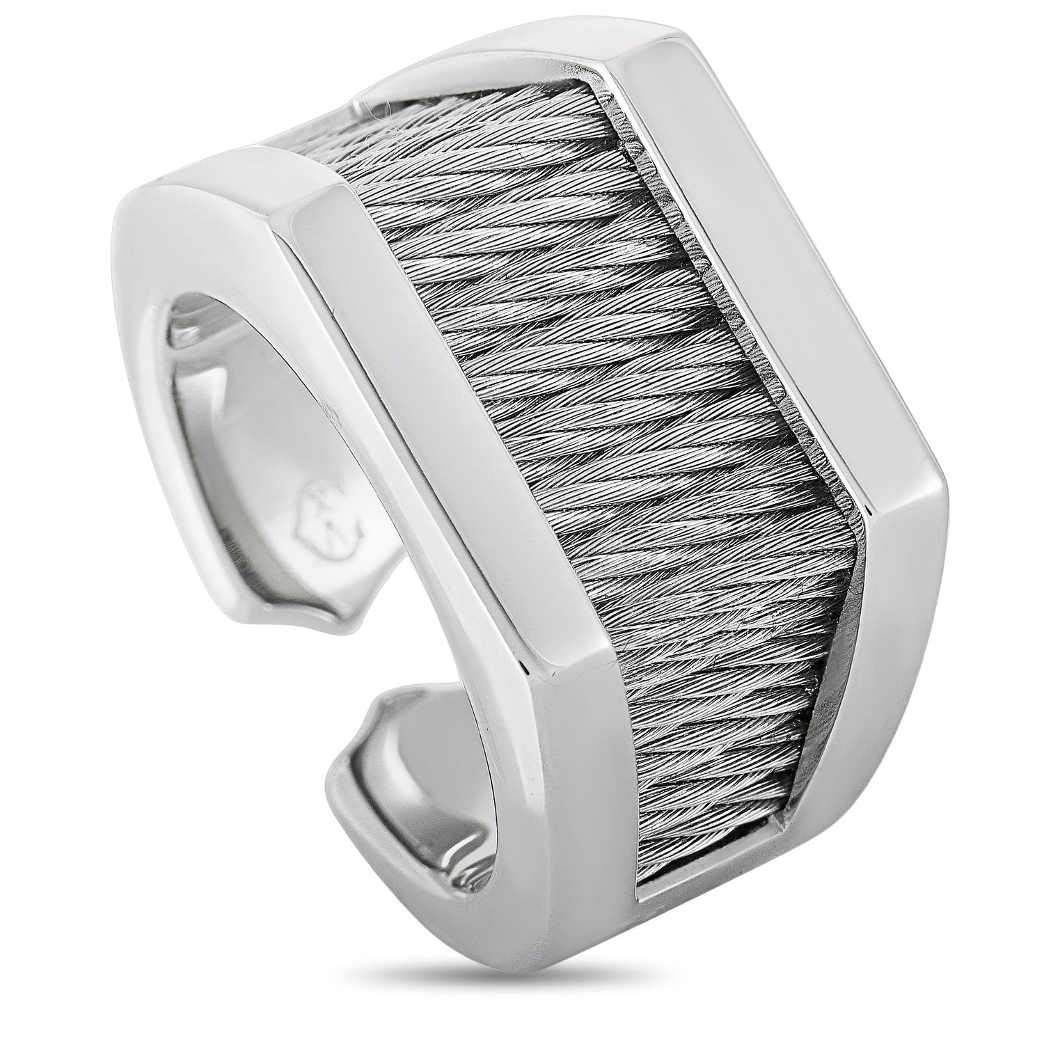 This Forever Stainless Steel Ring by Charriol is a sleek and sophisticated expression of modern design. Crafted from durable stainless steel, this bold ring features a substantial band with a smooth, polished finish. Its contemporary aesthetic makes it a versatile piece that complements both casual and formal looks.