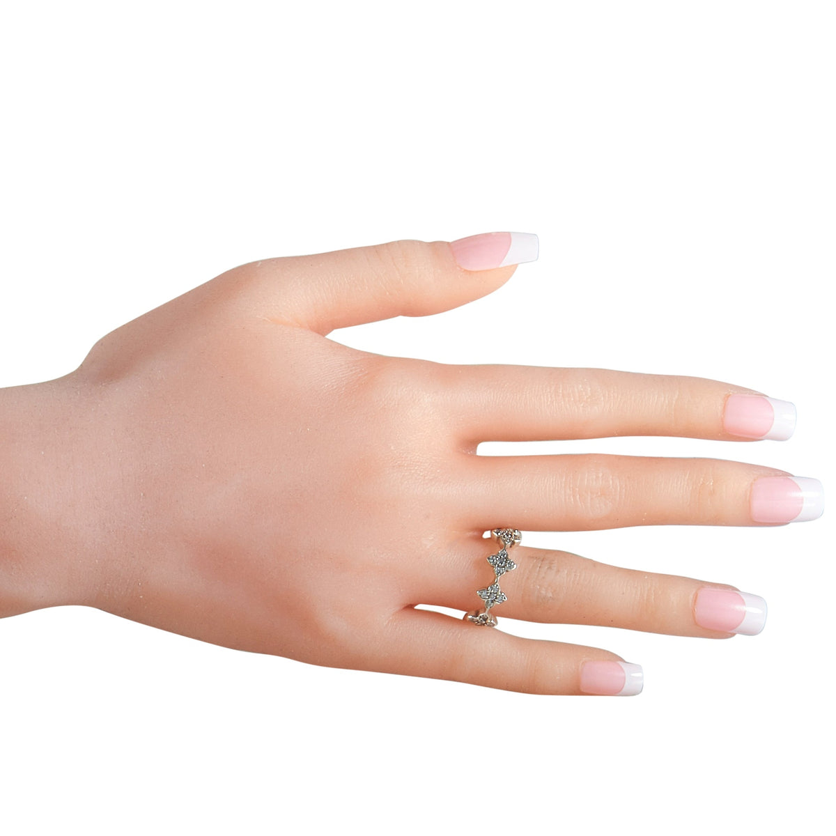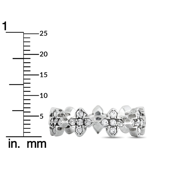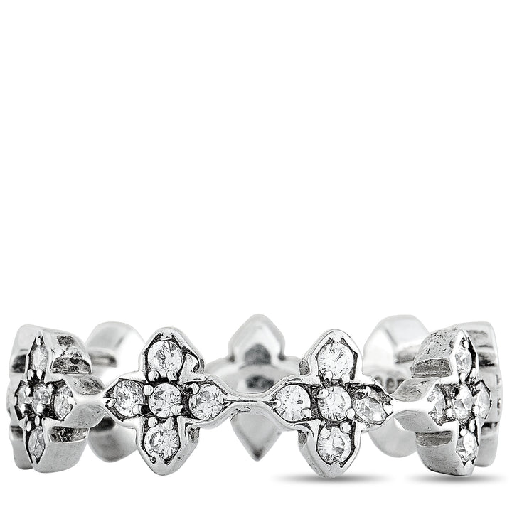 Crafted in sterling silver. Features white cubic zirconia stones. Band thickness: 7mm. Weight: 5.1 grams. Includes manufacturer’s box.