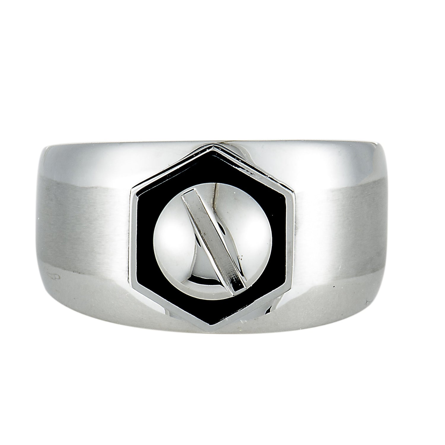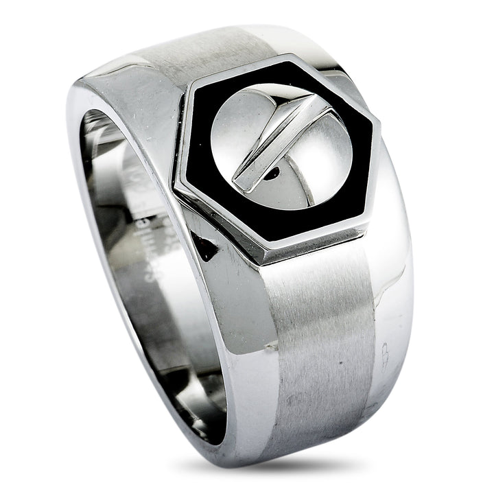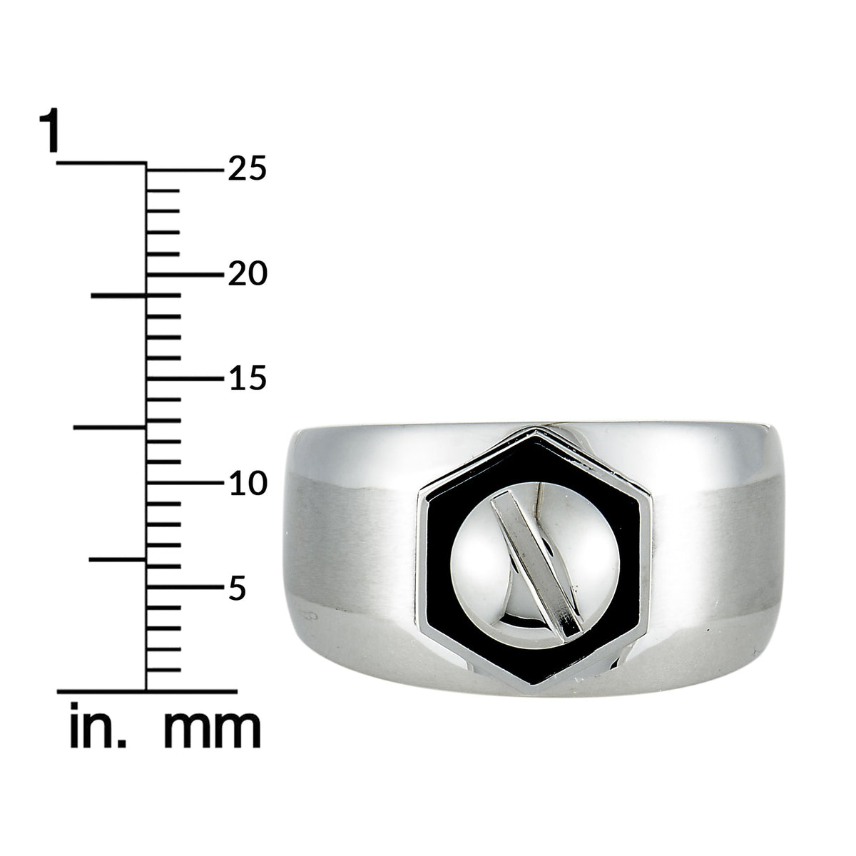 Crafted in stainless steel. Features black epoxy detailing. Ring top dimensions: 11mm x 13mm. Includes manufacturer’s box.
