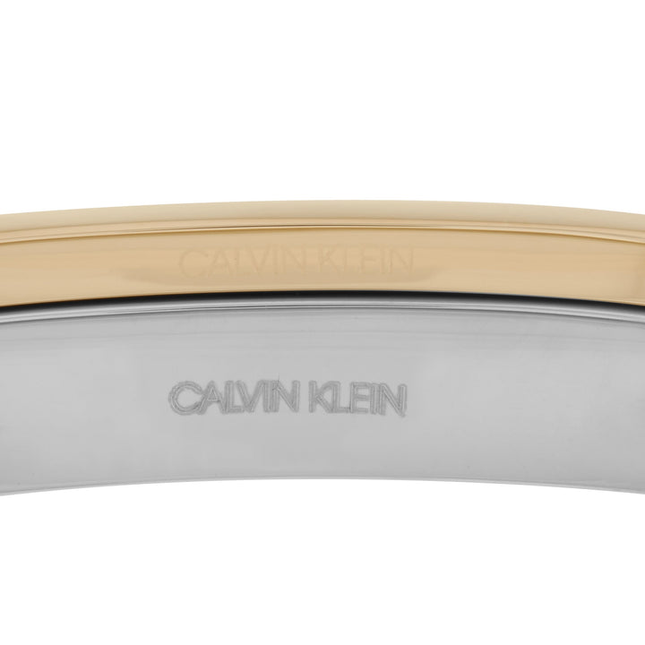 This Hook Stainless Steel Yellow Gold PVD Closed Bangle Bracelet Set by Calvin Klein is a contemporary take on everyday sophistication. The set includes two minimalist closed bangles—one in polished stainless steel and the other plated in warm yellow gold PVD. Designed with fold-over clasps for a seamless fit, they offer effortless versatility.
