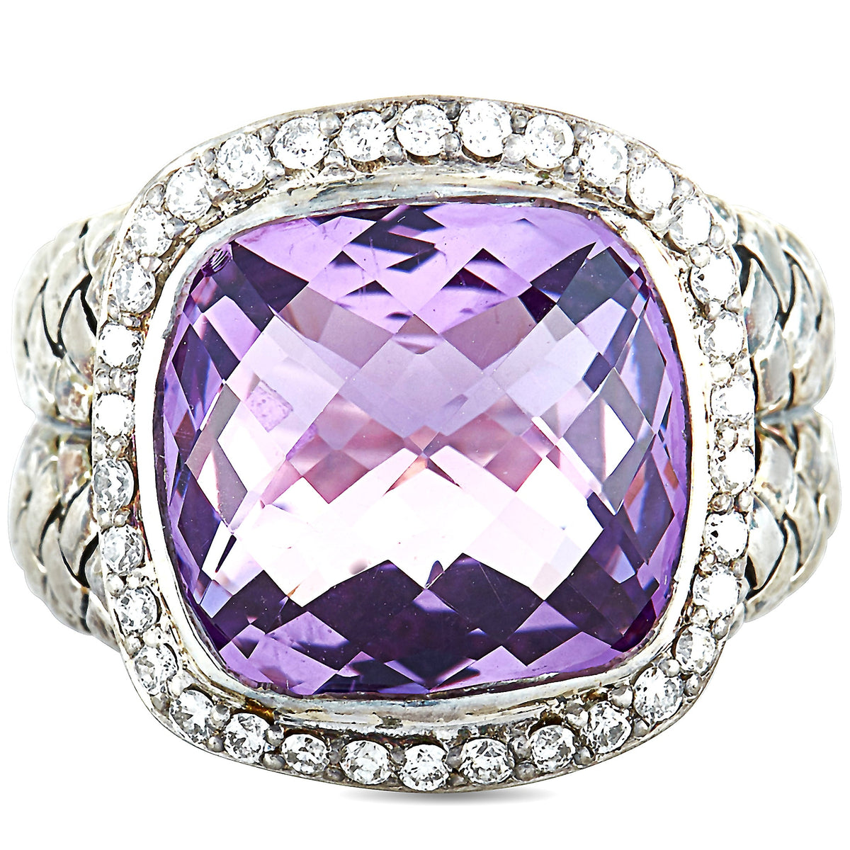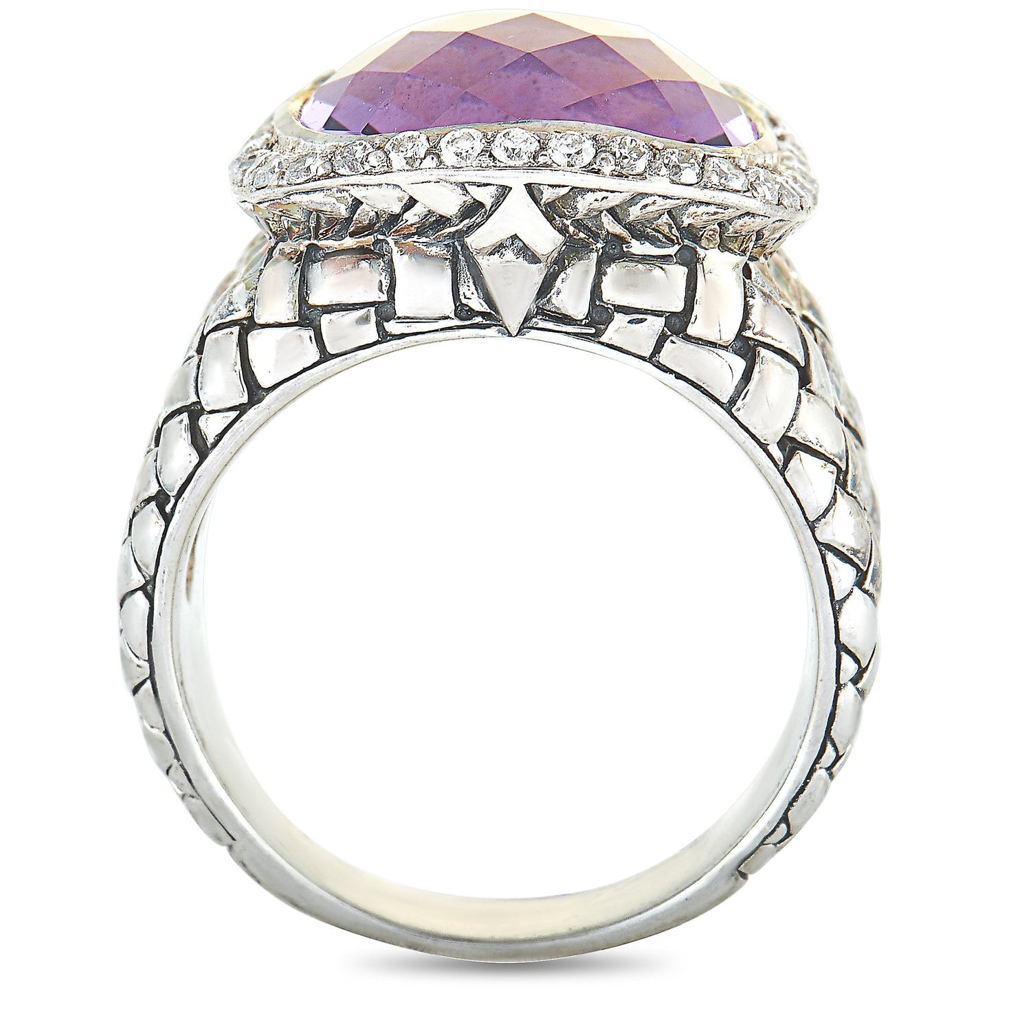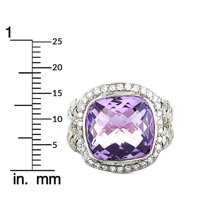 Scott Kay Sterling Silver Diamond and Amethyst Dome Ring
