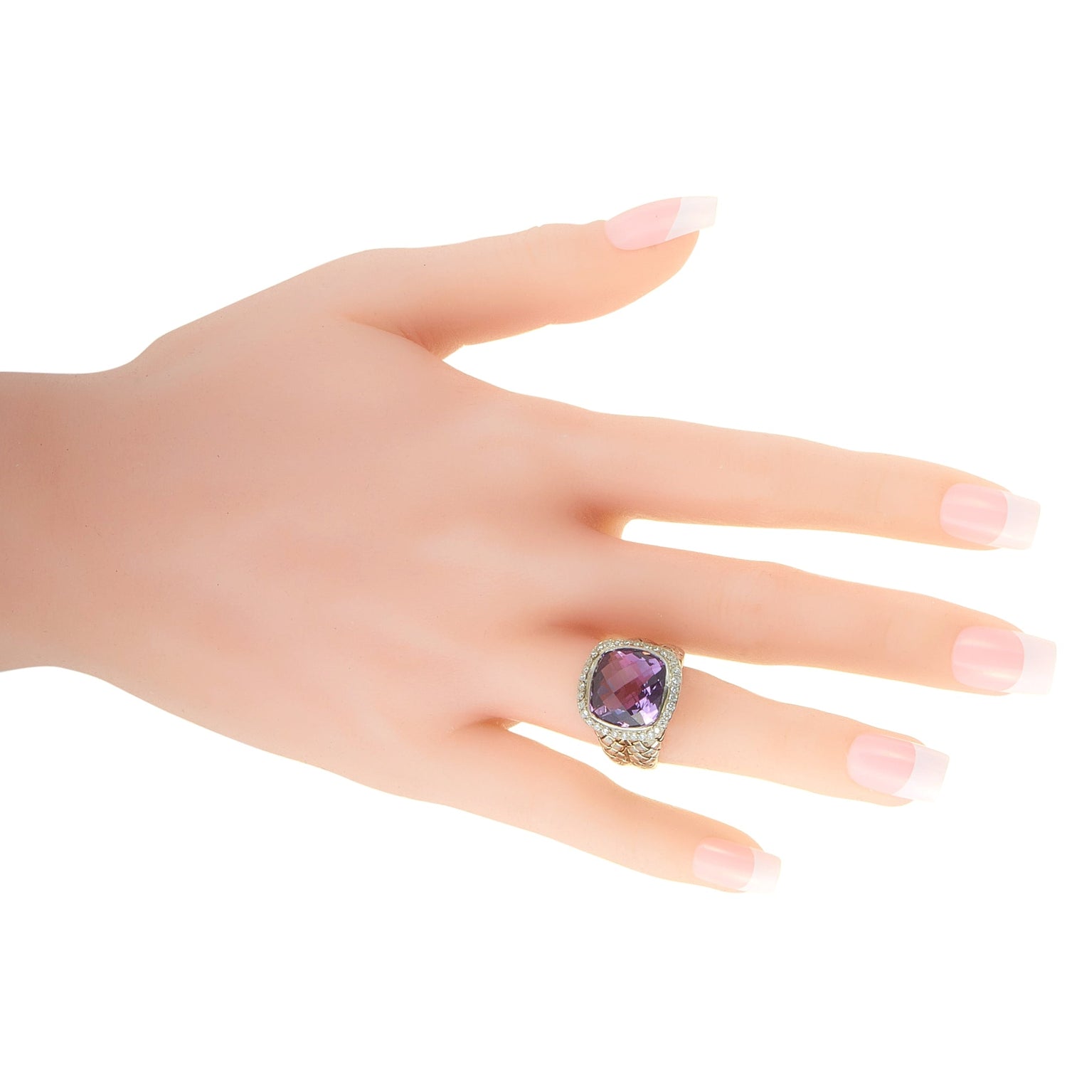 Crafted in sterling silver. Features a natural amethyst and 0.44 ctw of natural diamonds. Band thickness: 5mm. Top height: 7mm. Top dimensions: 17 x 17mm. Weight: 12.1 grams. Includes gift box.