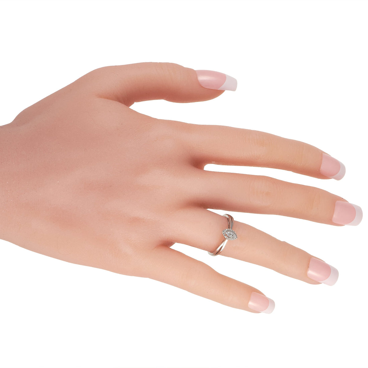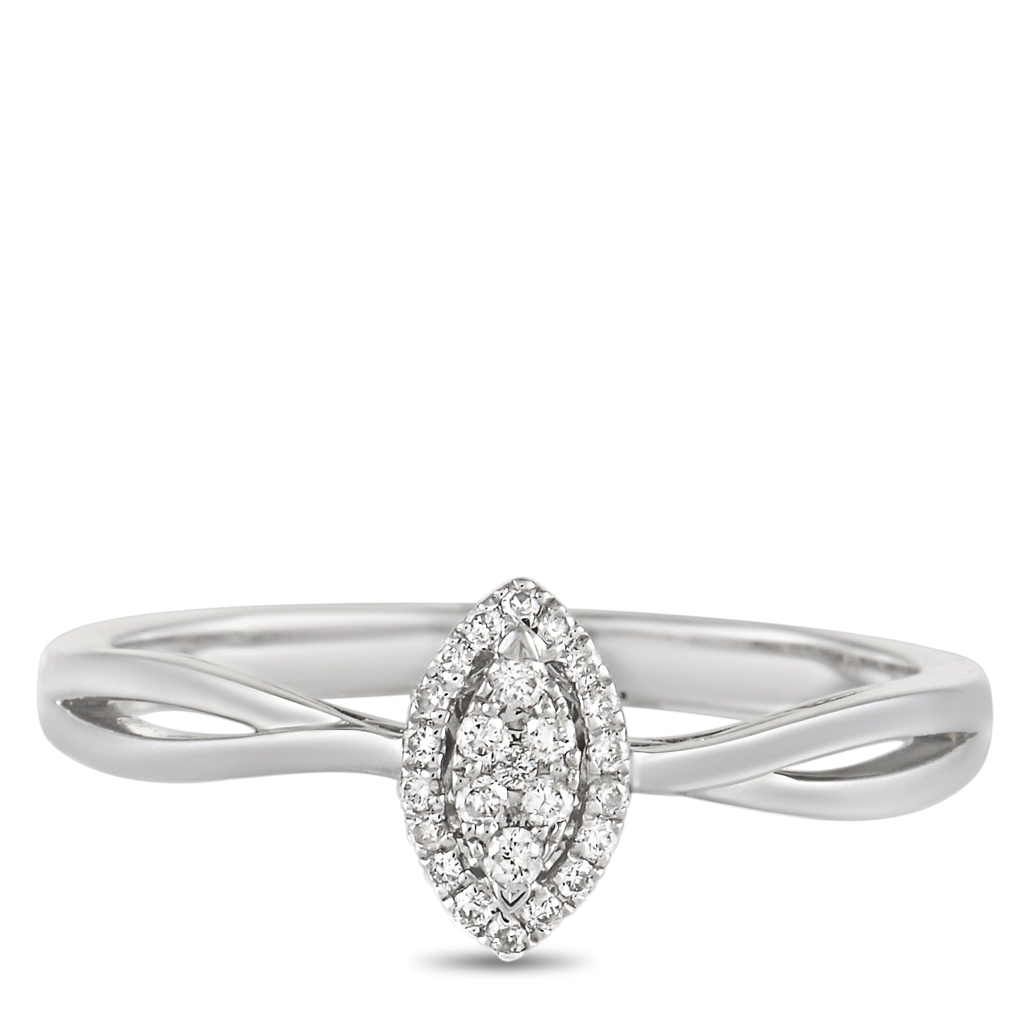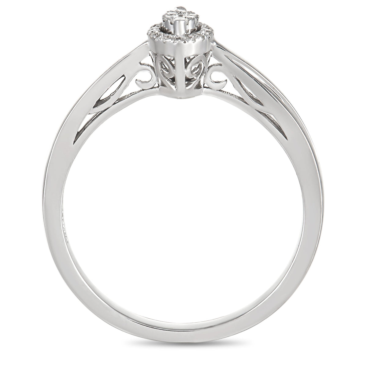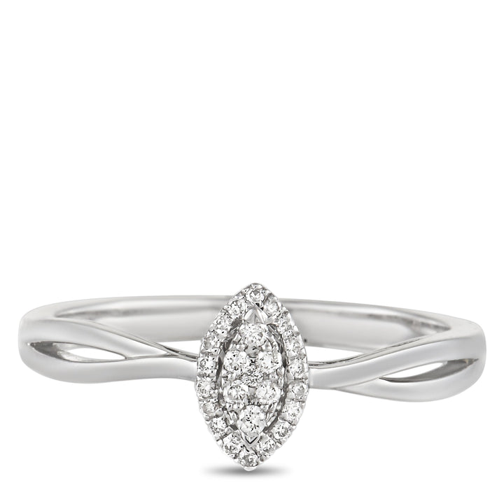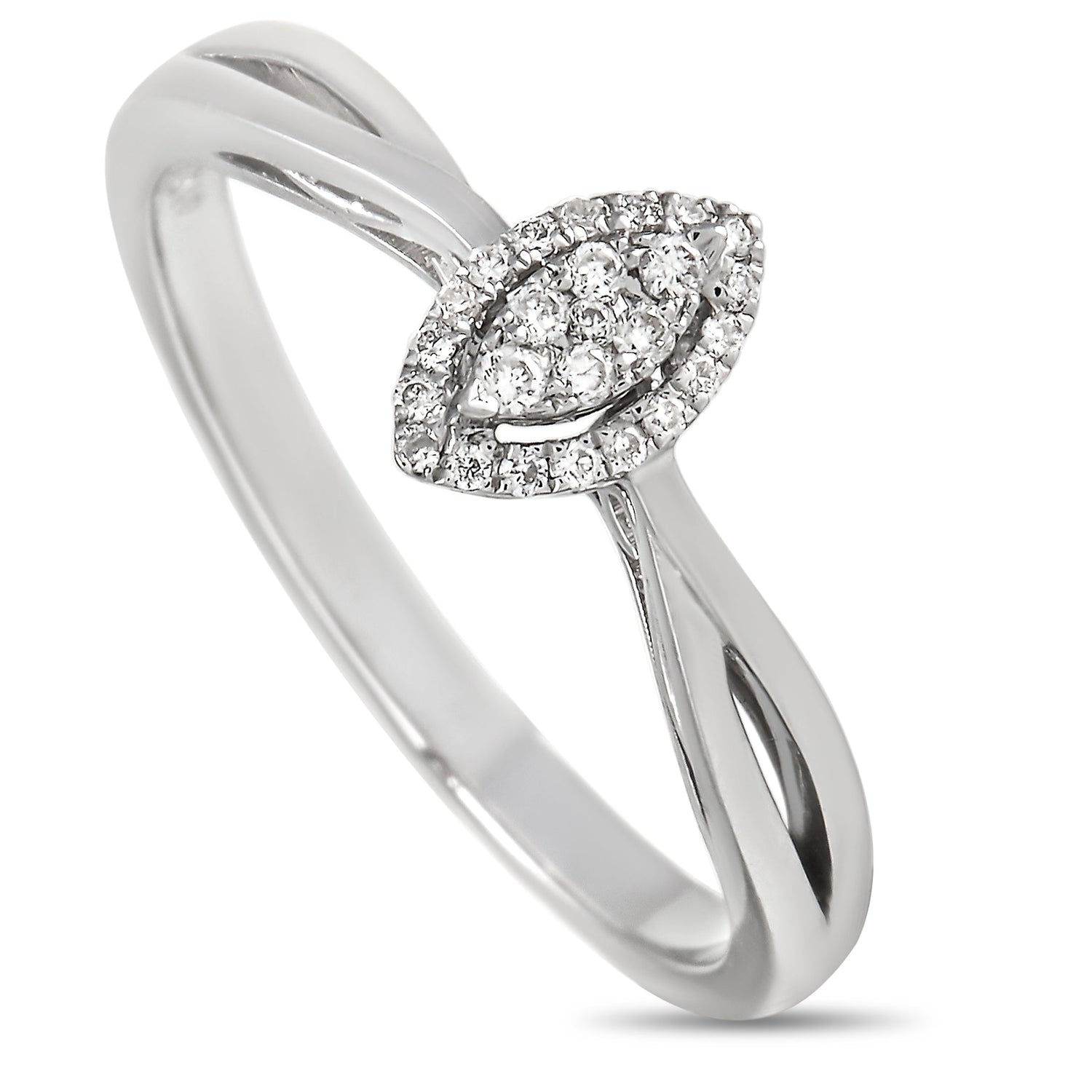 Crafted in 14K white gold. Features 0.10 ctw of natural diamonds. Band thickness: 2mm. Top height: 6mm. Top dimensions: 20 x 8mm. Weight: 2.5 grams. Includes gift box.