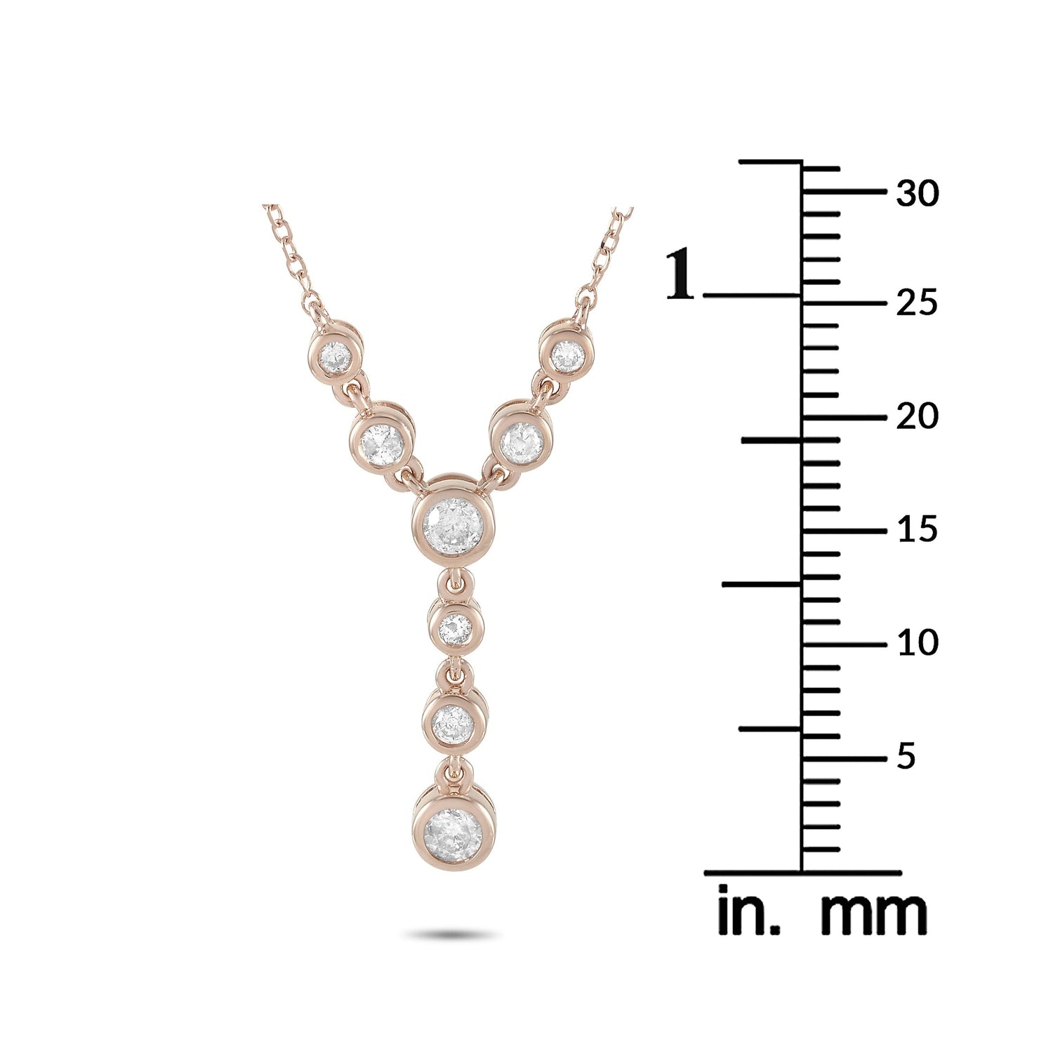Crafted in 14K rose gold. Features 0.25 ctw of natural diamonds. Pendant dimensions: 1 inch x 0.50 inch. Chain length: 15 inches. Weight: 2.2 grams. Includes gift box.