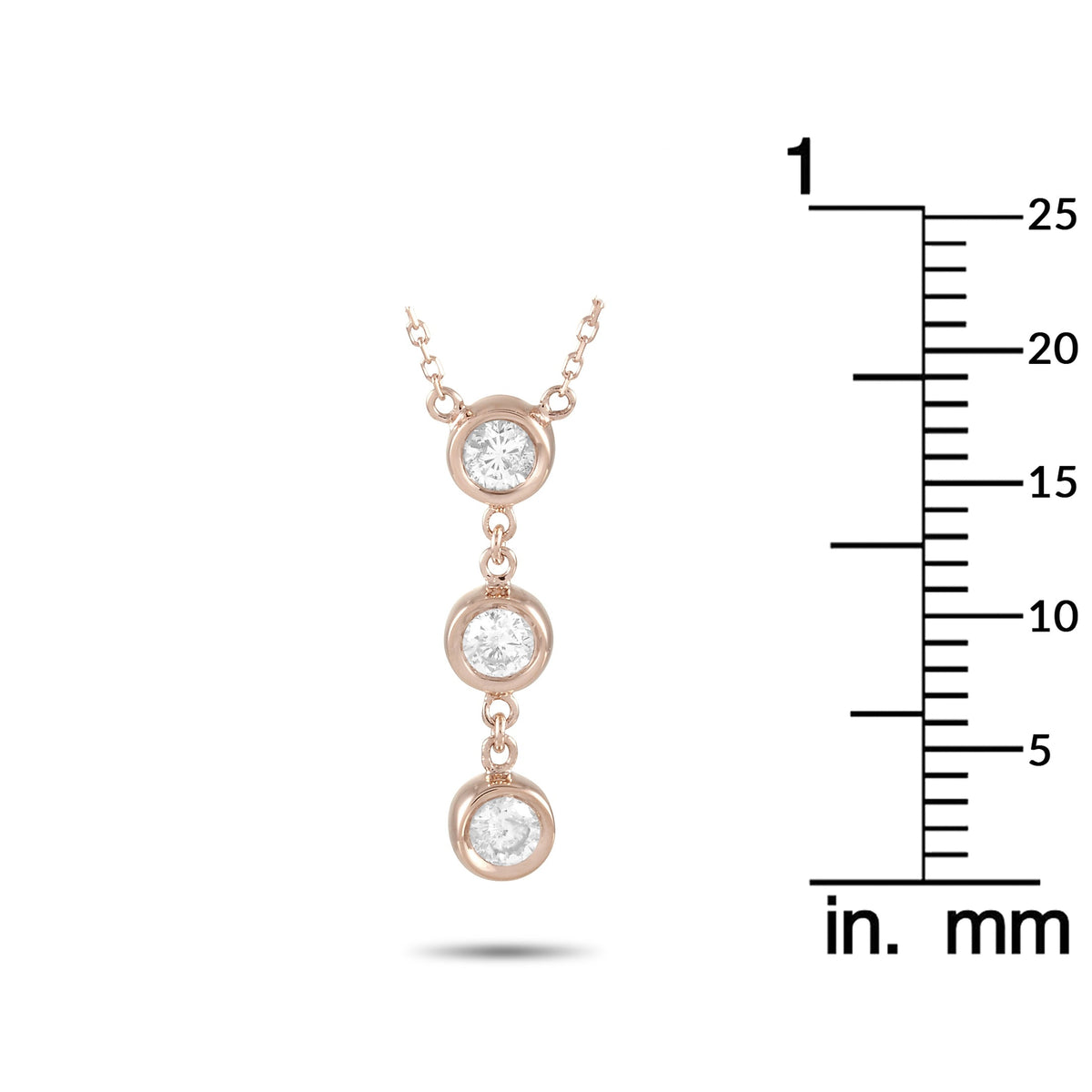Crafted in 14K rose gold. Features 0.35 ctw of natural diamonds. Pendant dimensions: 0.75 inches x 0.13 inches. Chain length: 15 inches. Weight: 1.9 grams. Includes gift box.