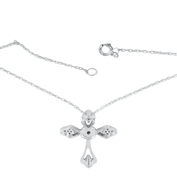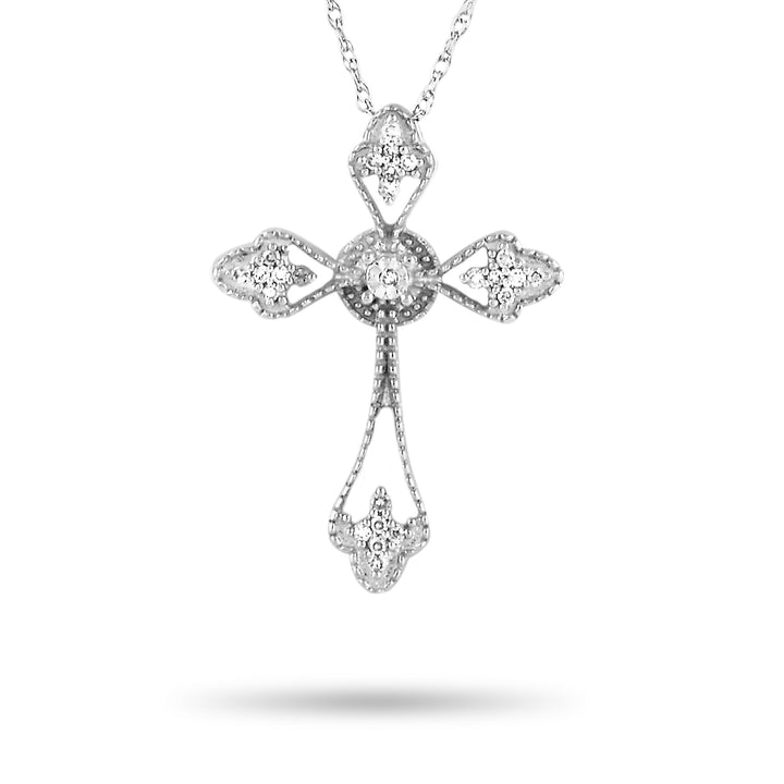 14K White Gold 0.10 ct Diamond Small Cross Pendant Necklace