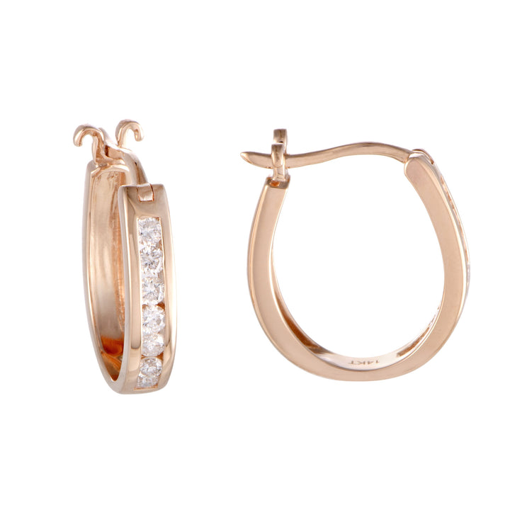 14K Rose Gold 0.33 ct Diamond Small Oval Hoop Earrings