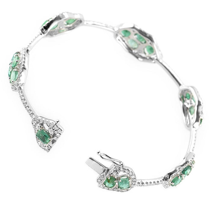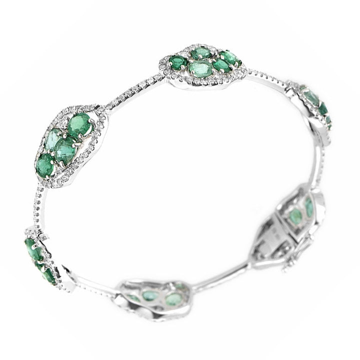 Single Row 18K White Gold Diamond and Emerald Bangle