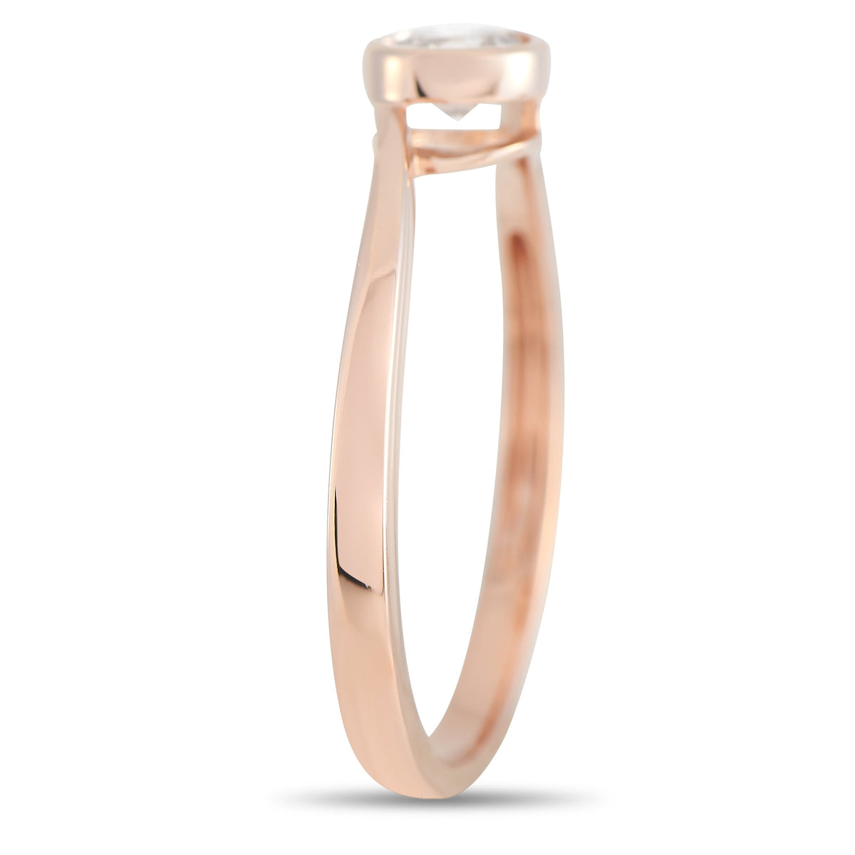 Crafted in 14K rose gold, bezel-set with a 0.26-carat round-cut diamond. Band thickness: 2mm. Top height: 3mm. Top dimensions: 5mm x 5mm. Total weight: 2.7 grams.