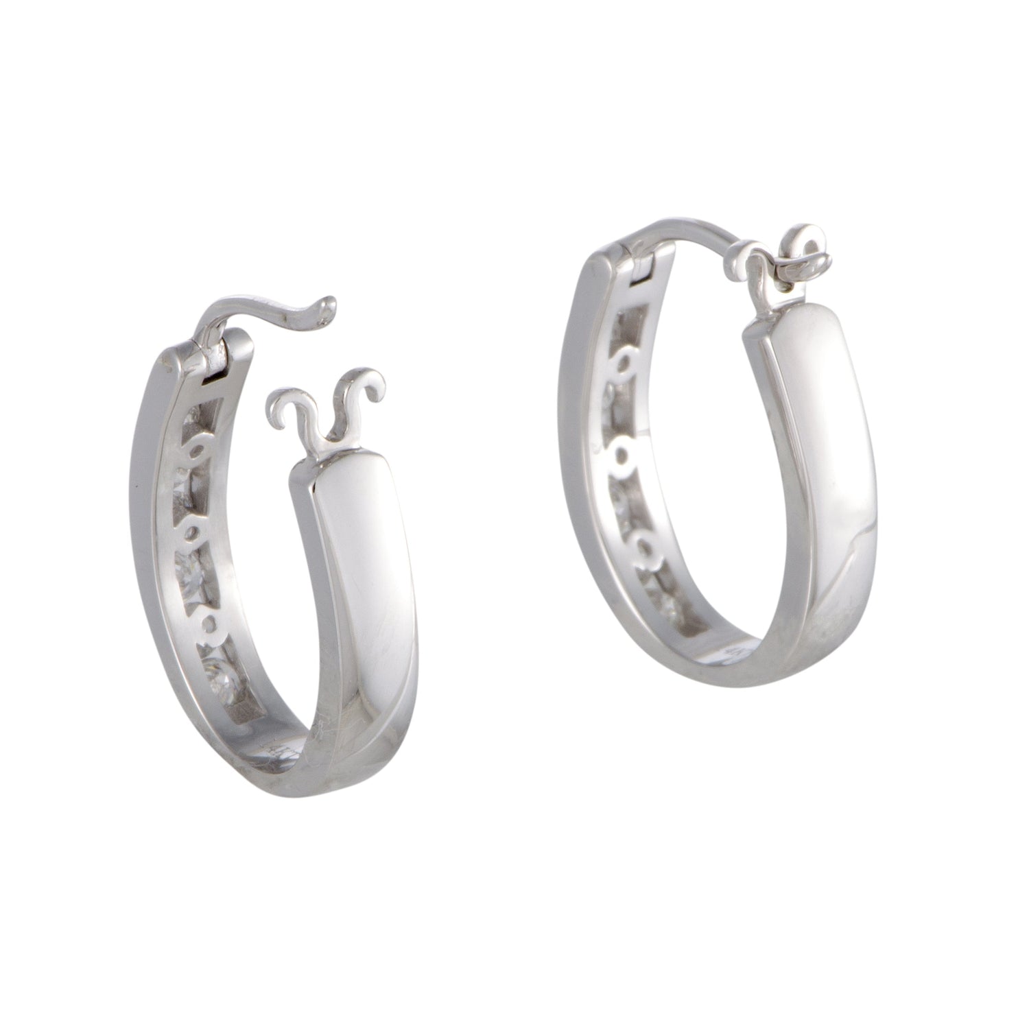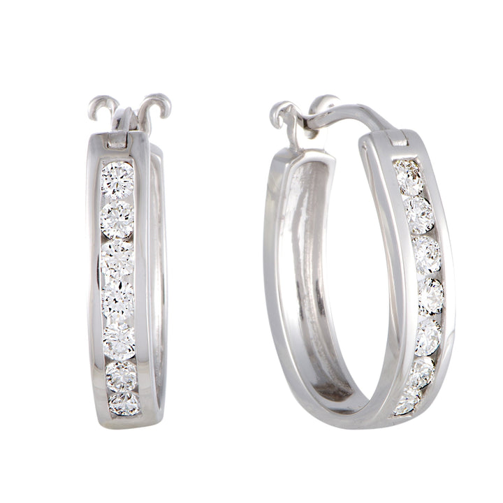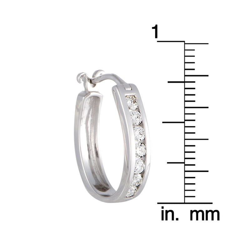 1/2 Carat 14K White Gold Channel Set Diamond Huggies Hoop Earrings (0.5 ctw) Diamonds