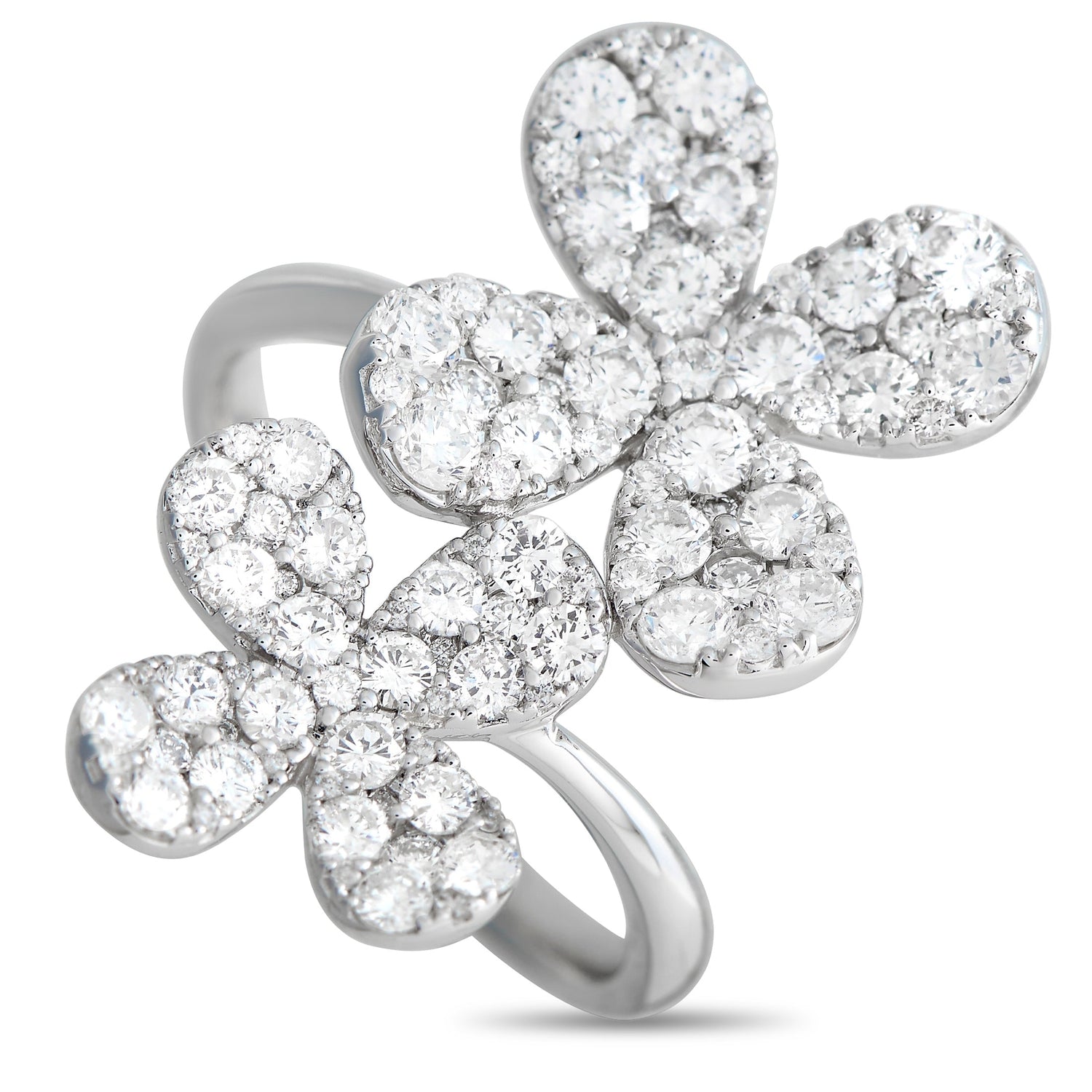 Made of 18K white gold, featuring 1.65 carats of diamonds. Band thickness: 2mm, top height: 3mm, top dimensions: 15x25mm. Presented in a gift box.
