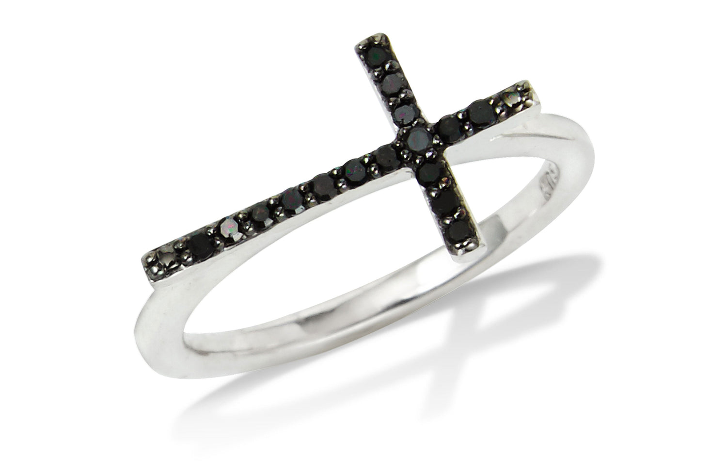 SS 925 Diamond Ring 0.10TCW by Savvy Cie features a stylish and unique cross design with 0.10 TCW black diamonds. Perfect for daily wear or special occasions. Available in size 8.