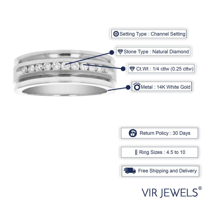 This 1/4 cttw SI1-SI2 11 Stone Certified Machine Diamond Wedding Band by Vir Jewels combines modern design with classic elegance. Featuring 11 natural diamonds, the ring has a luxurious weight and width, ensuring it makes a lasting impression. Certified by AGS, this band offers peace of mind with its authenticity and craftsmanship. The perfect piece for marking a special occasion or as a symbol of enduring love.