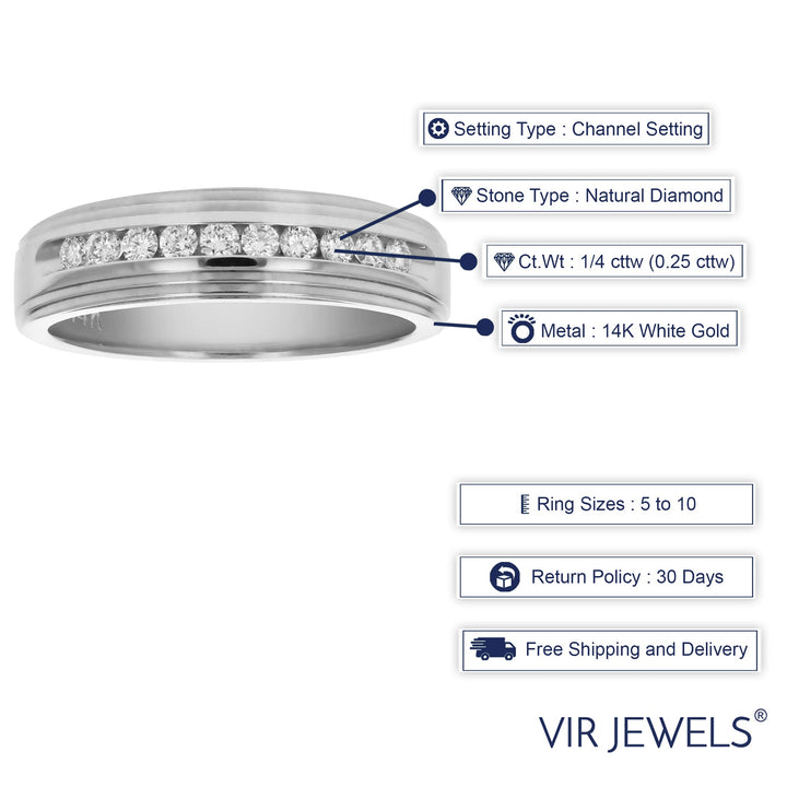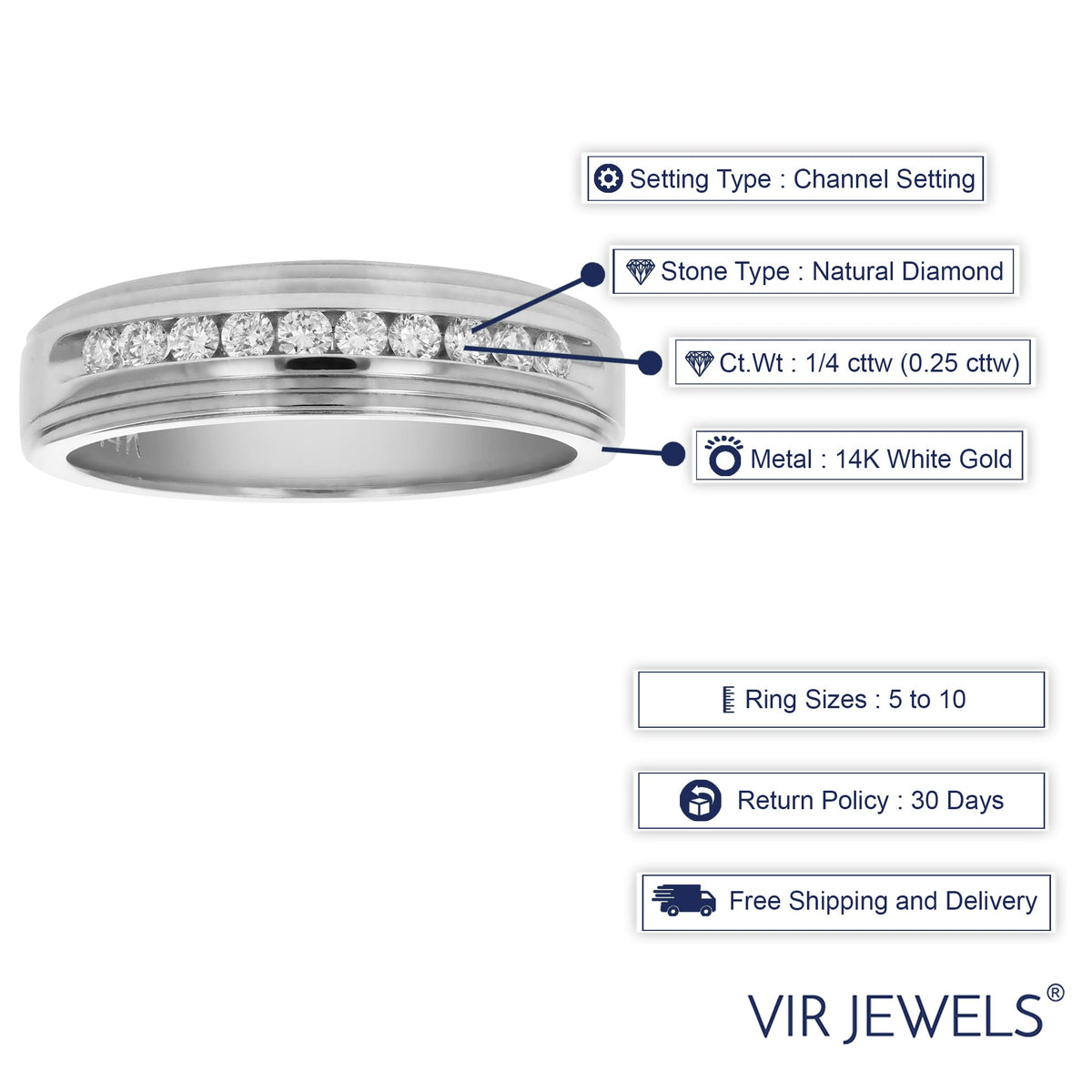 This 1/4 cttw SI1-SI2 10 Stone Certified Machine Diamond Wedding Band by Vir Jewels is a statement piece with a modern design. Featuring 10 natural diamonds, the ring offers an elegant balance of brilliance and subtlety. The certified diamonds, along with the polished 14K gold band, create a sophisticated look perfect for weddings or other meaningful moments.