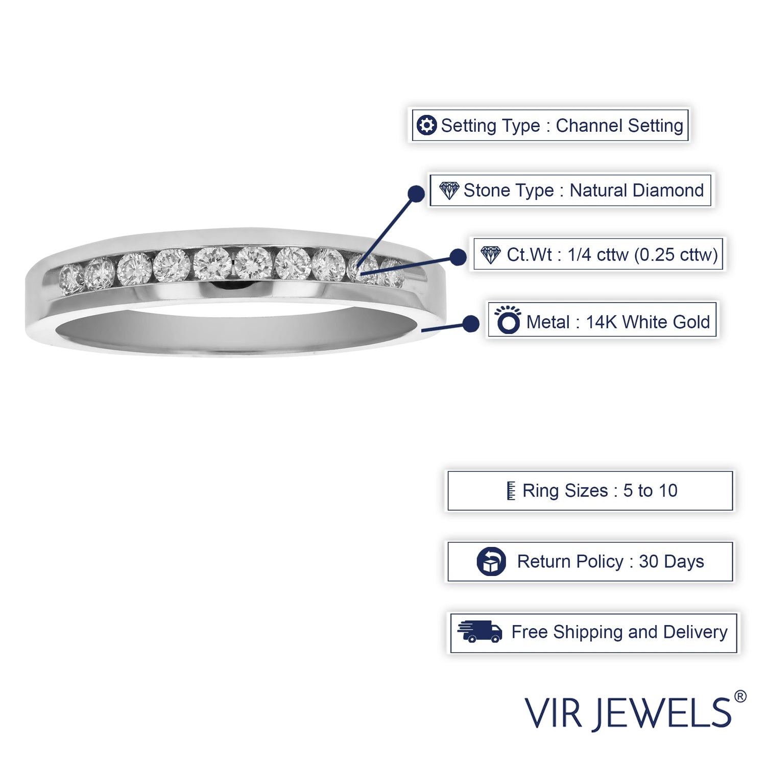 This 1/4 cttw SI2-I1 14K Gold Machine Set Diamond Wedding Band Channel Set features 10 diamonds set in a sleek 14K gold channel. With SI2-I1 clarity and I-J color, this design ensures a polished look, ideal for any special occasion.