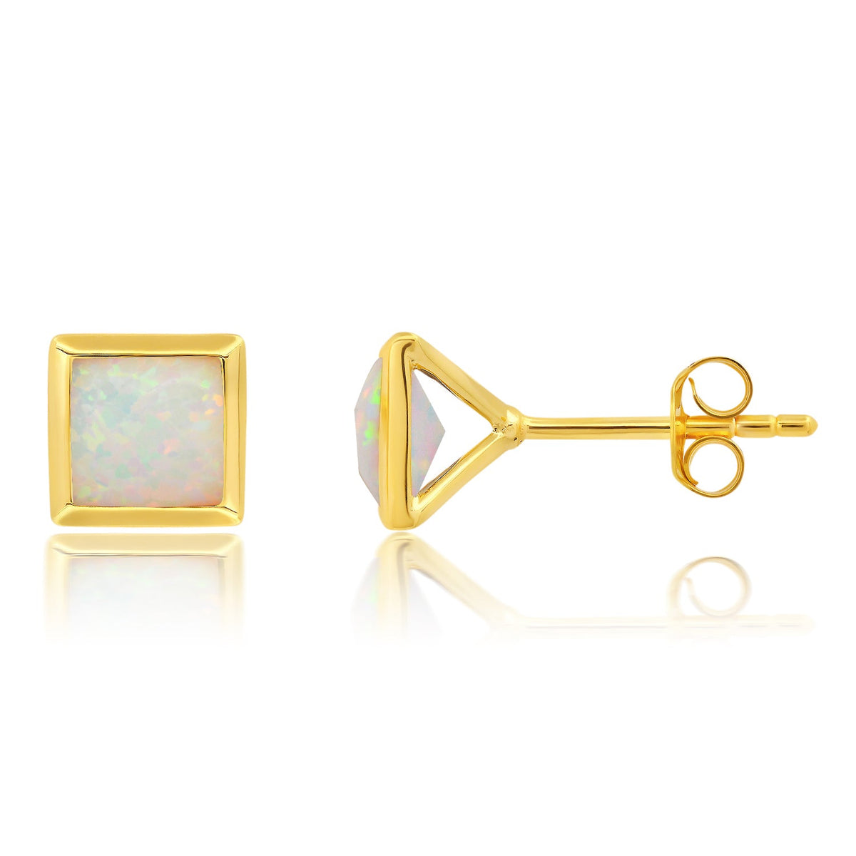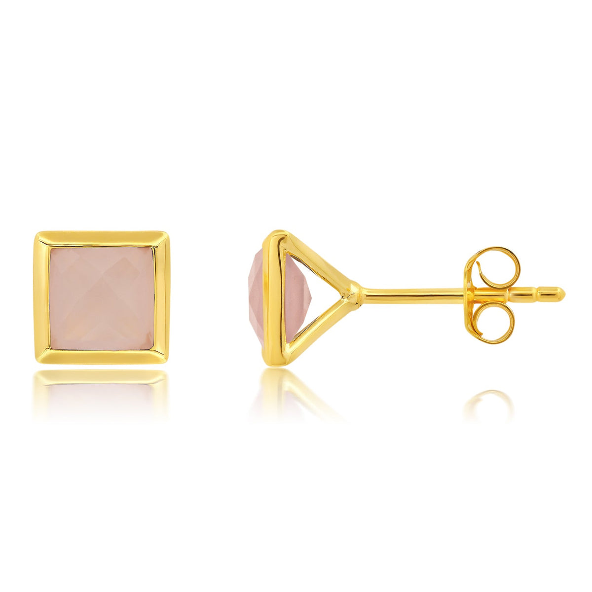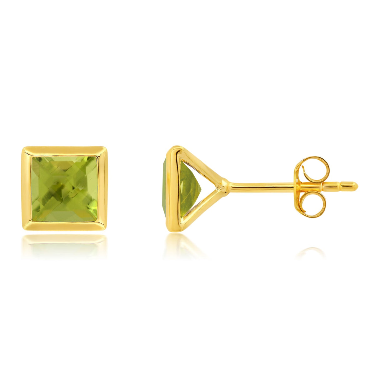 Sterling Silver and 14k Yellow Gold Plated Princess Cut 6mm Gemstone Square Stud Earrings from Nicole Miller offer a classic look with a modern twist. These stud earrings feature princess-cut gemstones in a square setting with push-back closures.