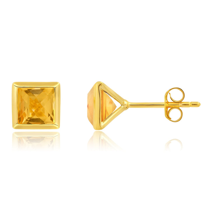 Sterling Silver and 14k Yellow Gold Plated Princess Cut 6mm Gemstone Square Stud Earrings with Push Backs